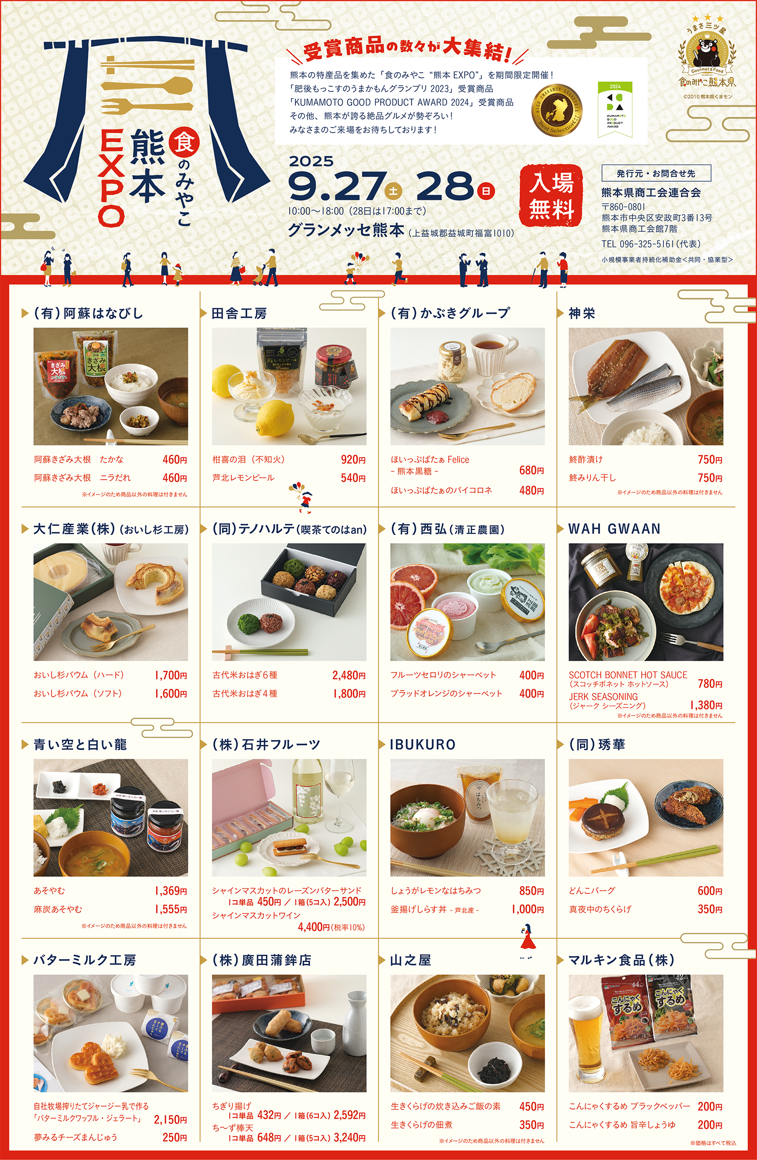 「食のみやこ“熊本 EXPO”」催事販売会、9月27日・28日グランメッセ熊本にて開催。食の賞レースで認定を受けた16事業所が32品以上の自慢の絶品グルメを出展