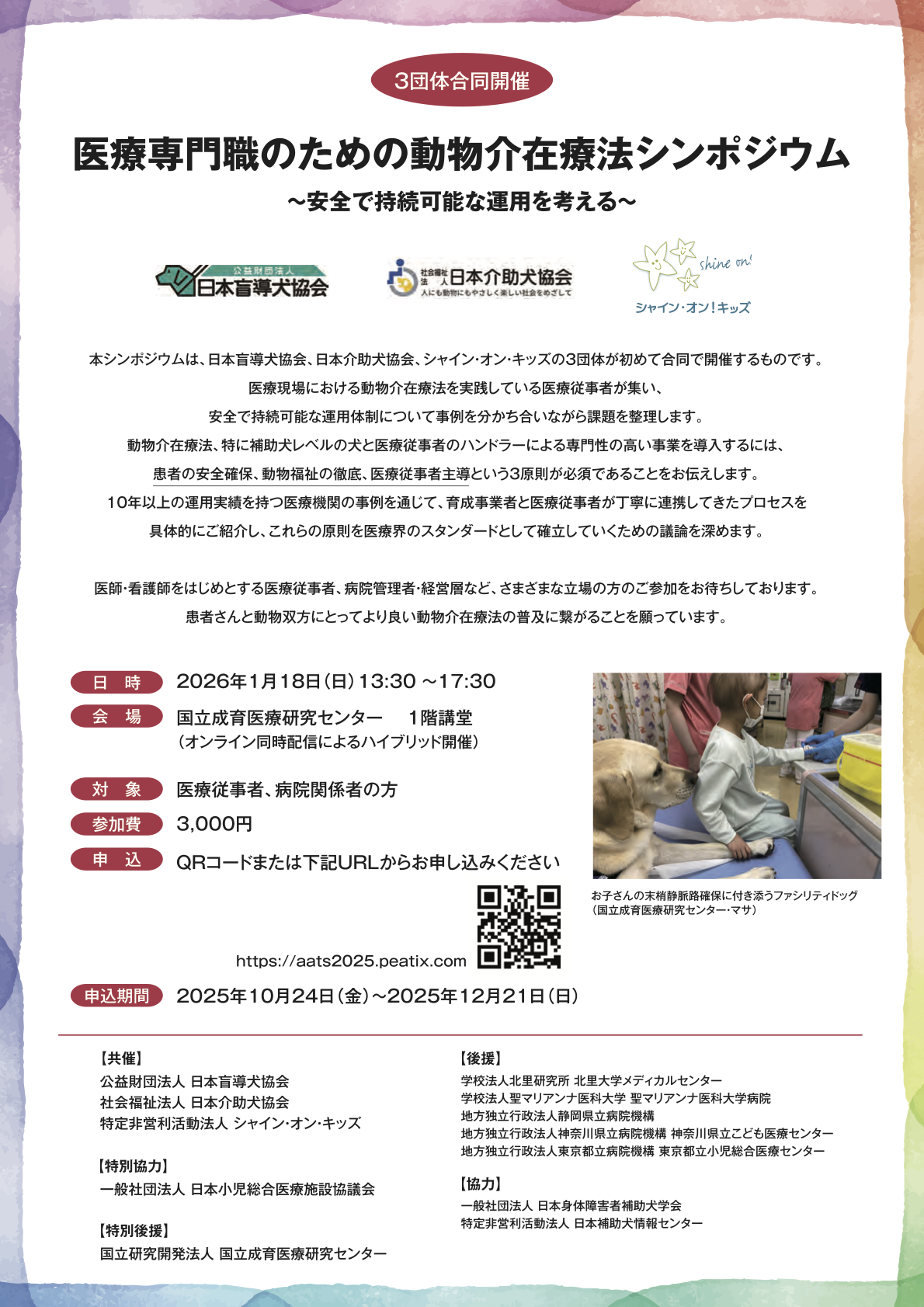 日本盲導犬協会、日本介助犬協会、シャイン・オン・キッズで初の合同シンポジウムを開催