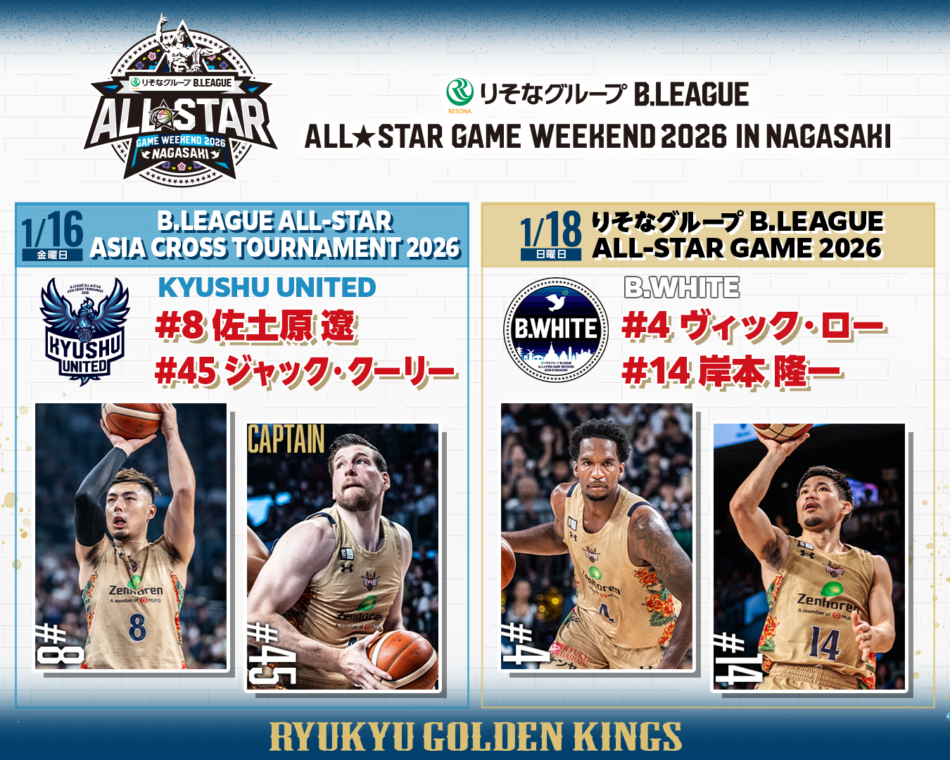 キングスから4選手、キングスU18から2選手が「りそなグループ B.LEAGUE ALL-STAR GAME WEEKEND 2026 IN NAGASAKI」へ出場決定!