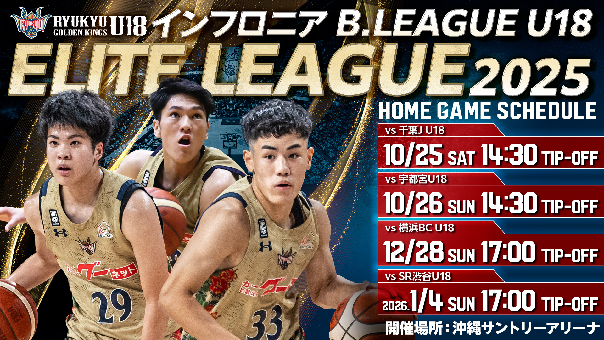 キングスU18「インフロニア B.LEAGUE U18 ELITE LEAGUE 2025」の4試合を沖縄サントリーアリーナにて開催