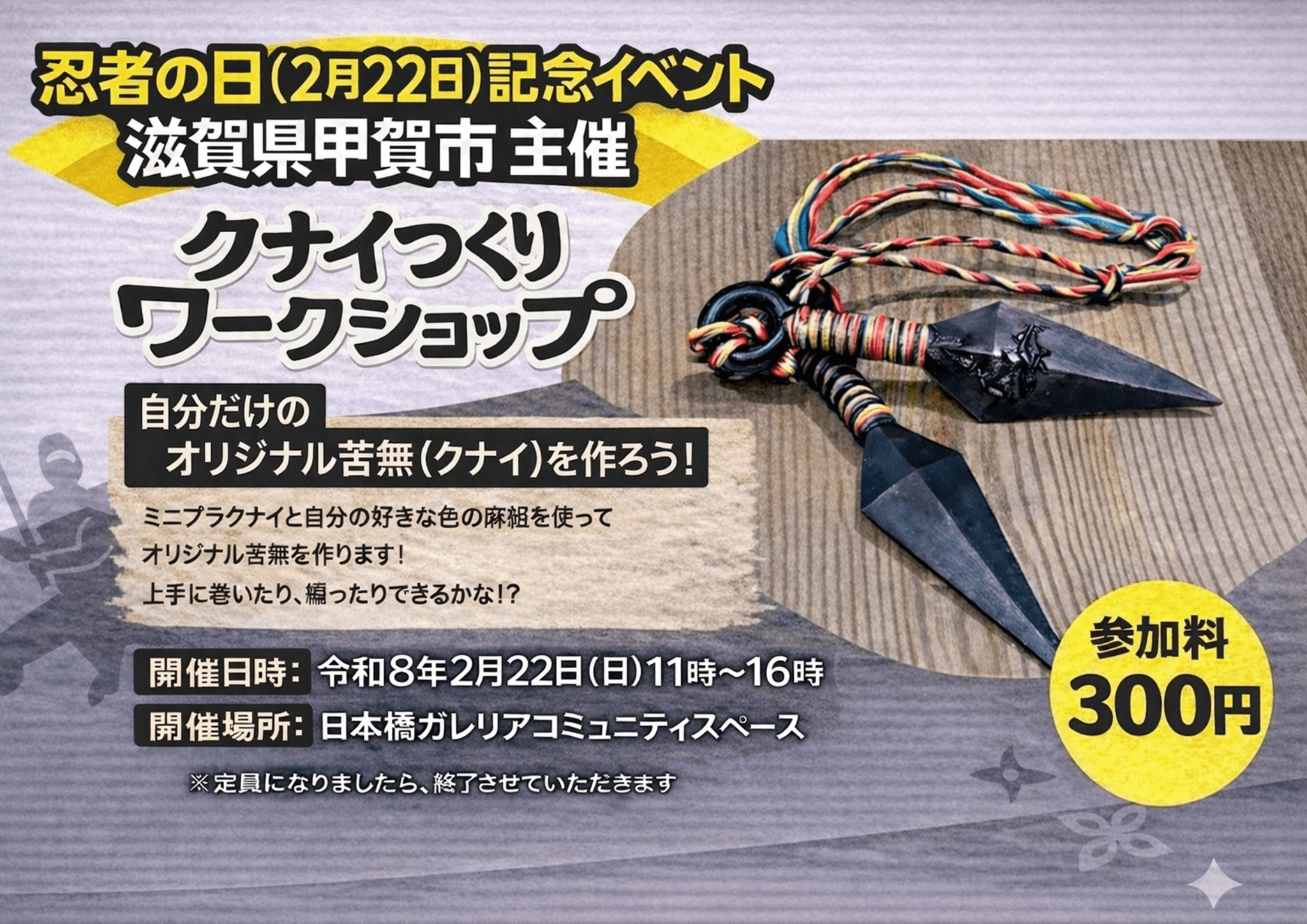 2/22東京にて開催!甲賀流オリジナルクナイつくり