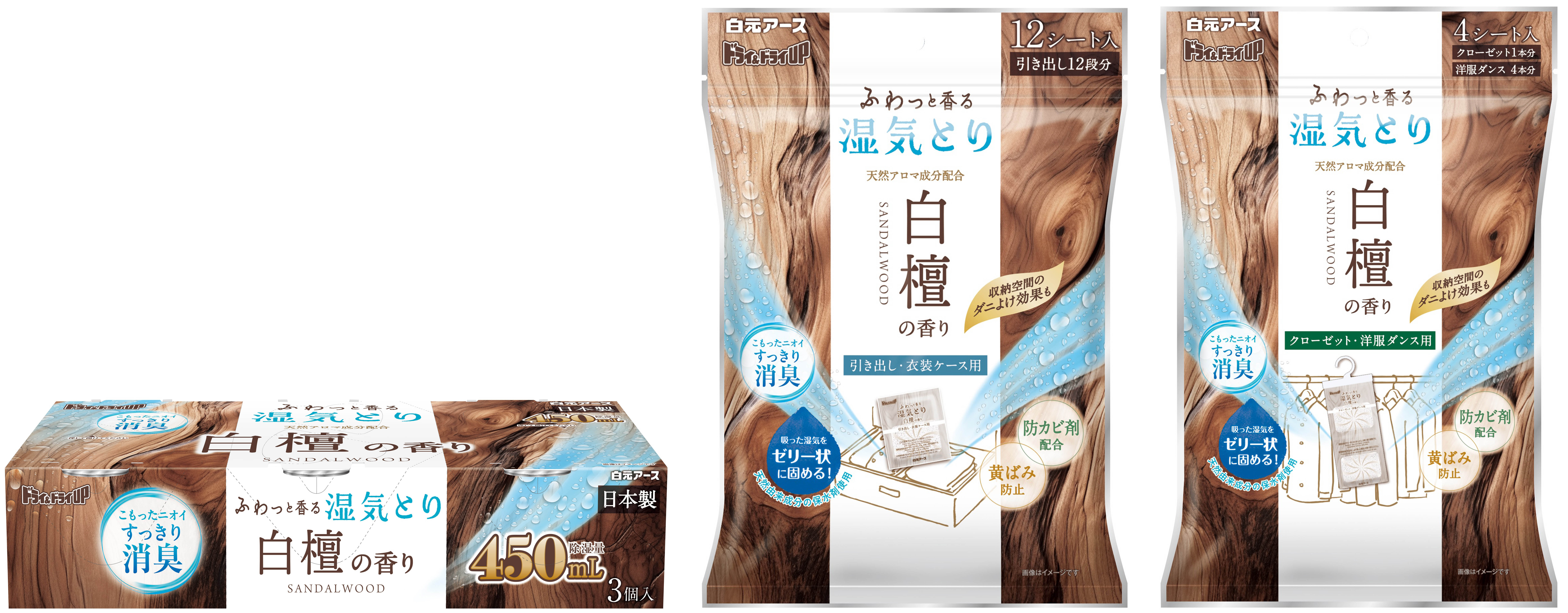 白檀の香りが収納空間にふわっと香る除湿剤『ドライ&ドライUP 白檀の香り』シリーズ新発売
