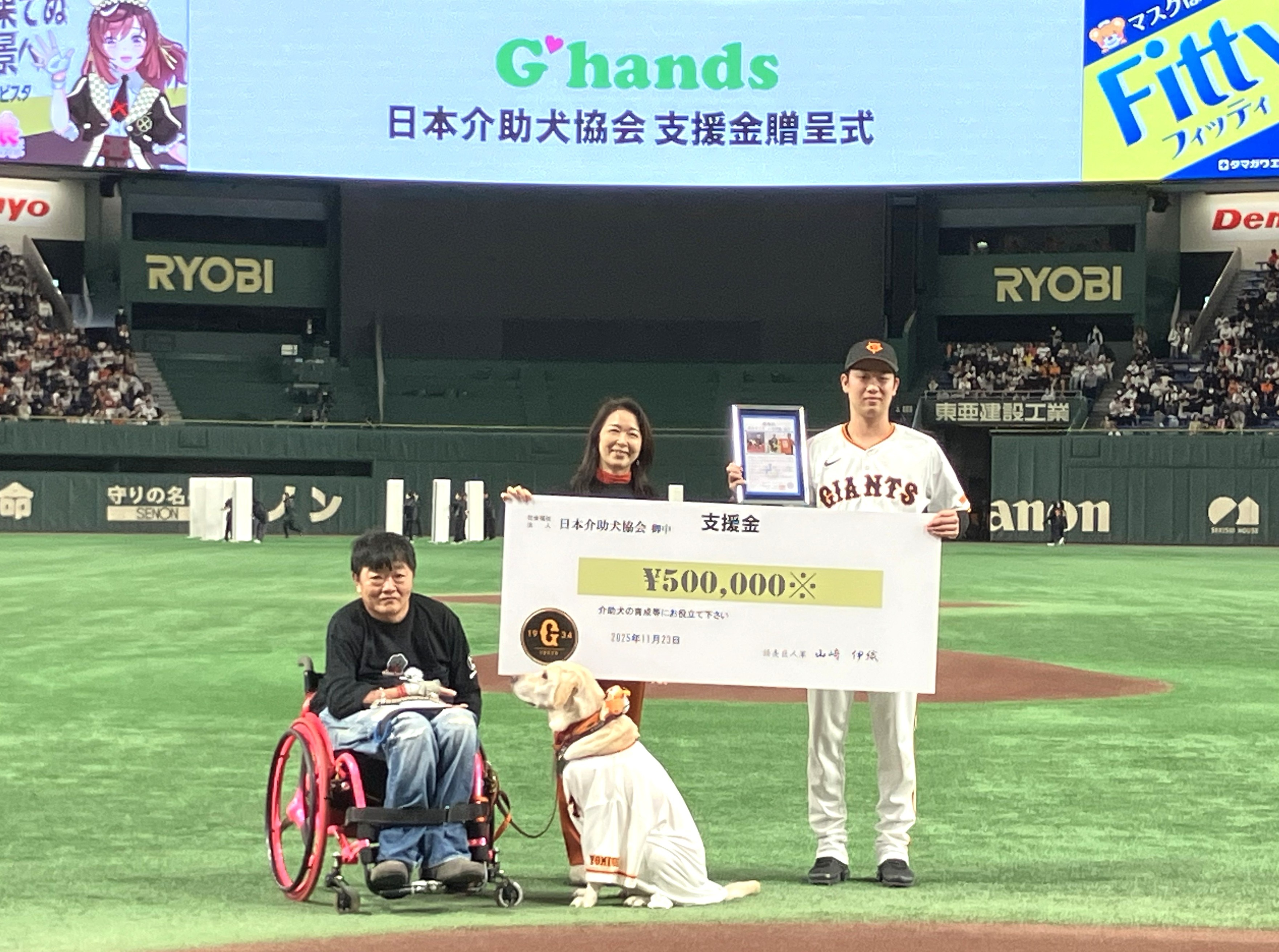 山崎伊織投手、介助犬普及を応援!日本介助犬協会へ寄付贈呈