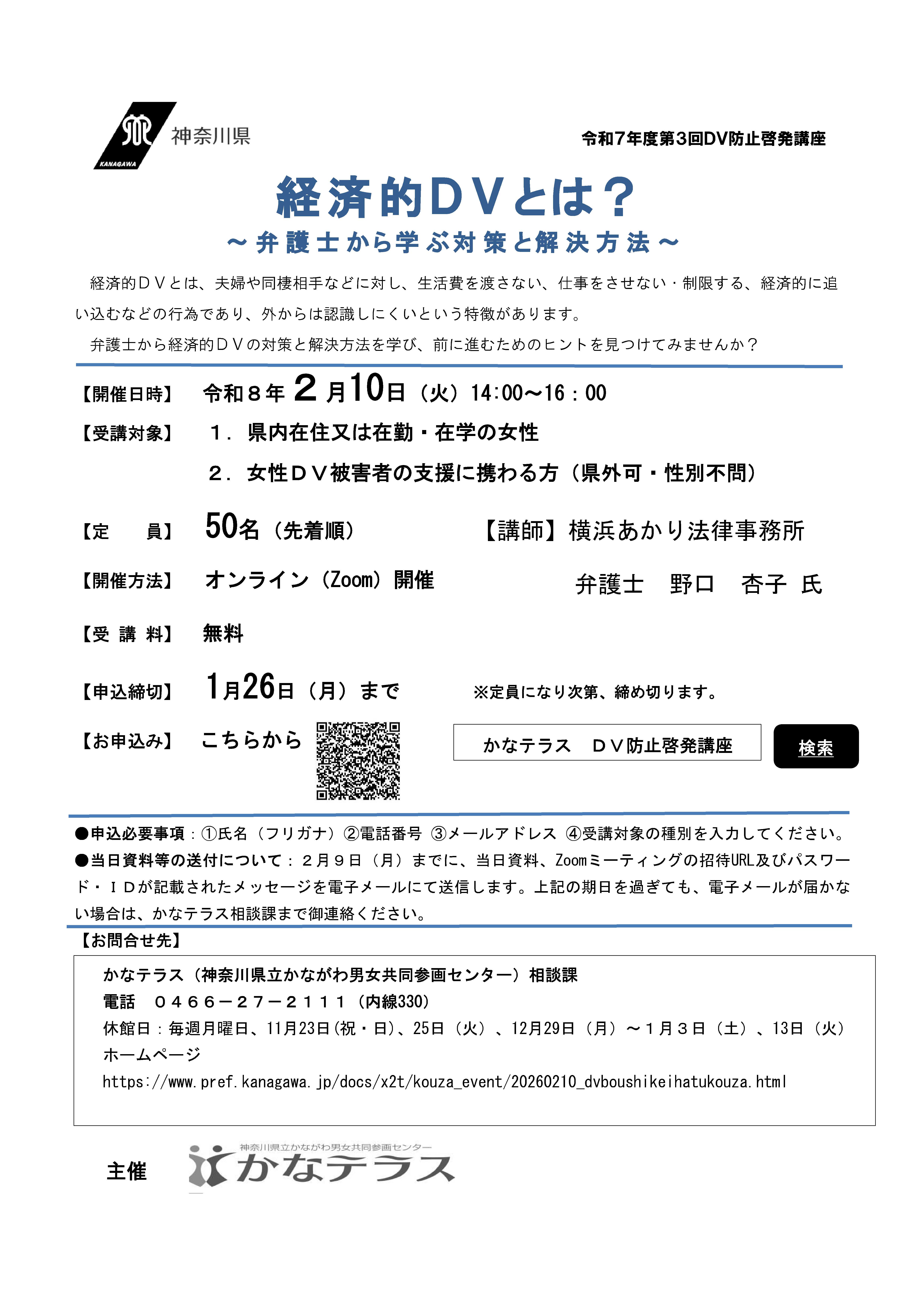 令和7年度第3回DV防止啓発講座 受講者募集中(PR TIMES トレンド)