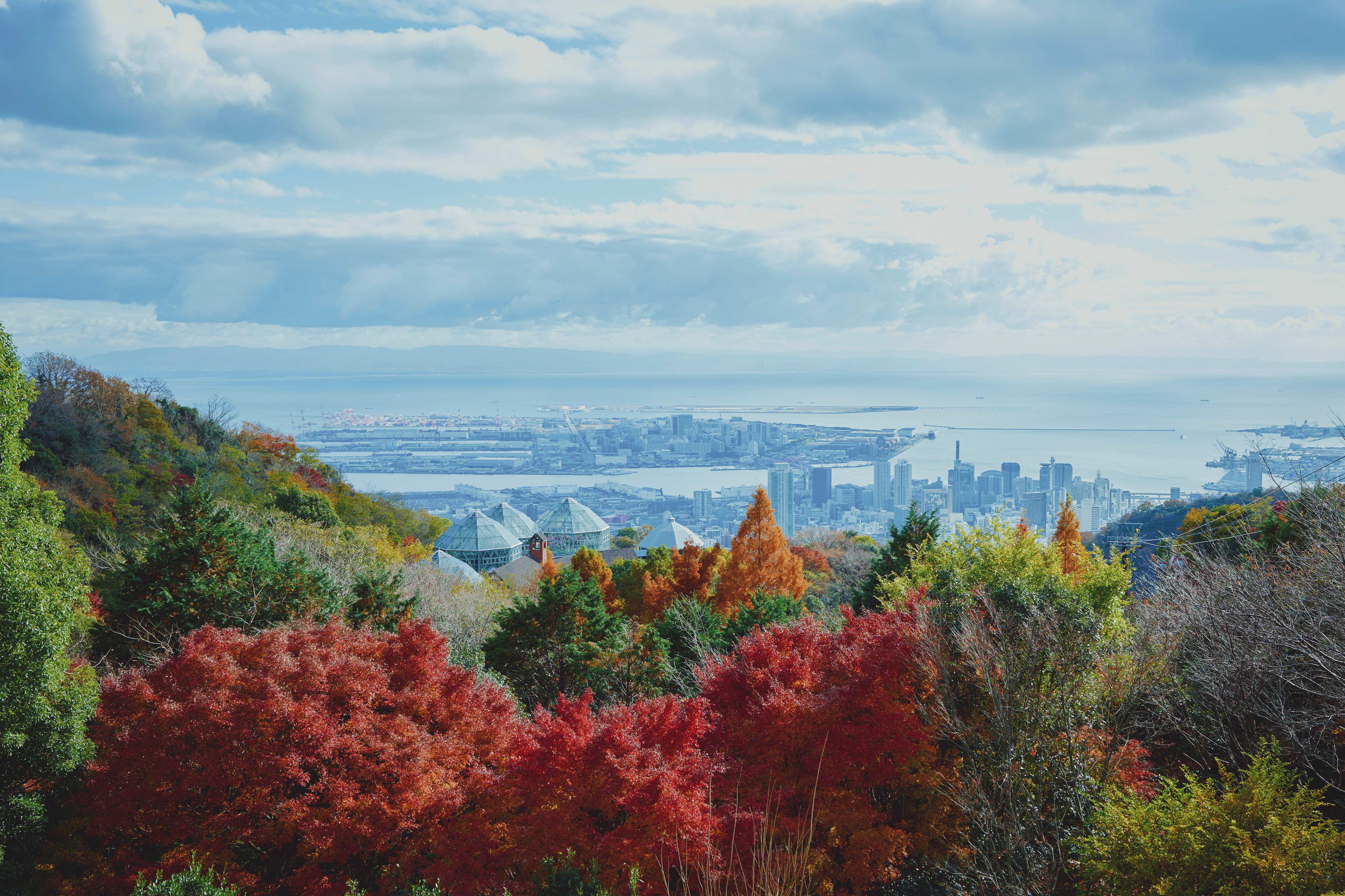 神戸の紅葉の名所「布引の紅葉」が見ごろです。秋色に彩るガーデンと紅葉が調和した情景や、ロープウェイの車窓から眺める壮大な景色を楽しめます。ライトアップされた紅葉と神戸の景色は新しい名所となっています。