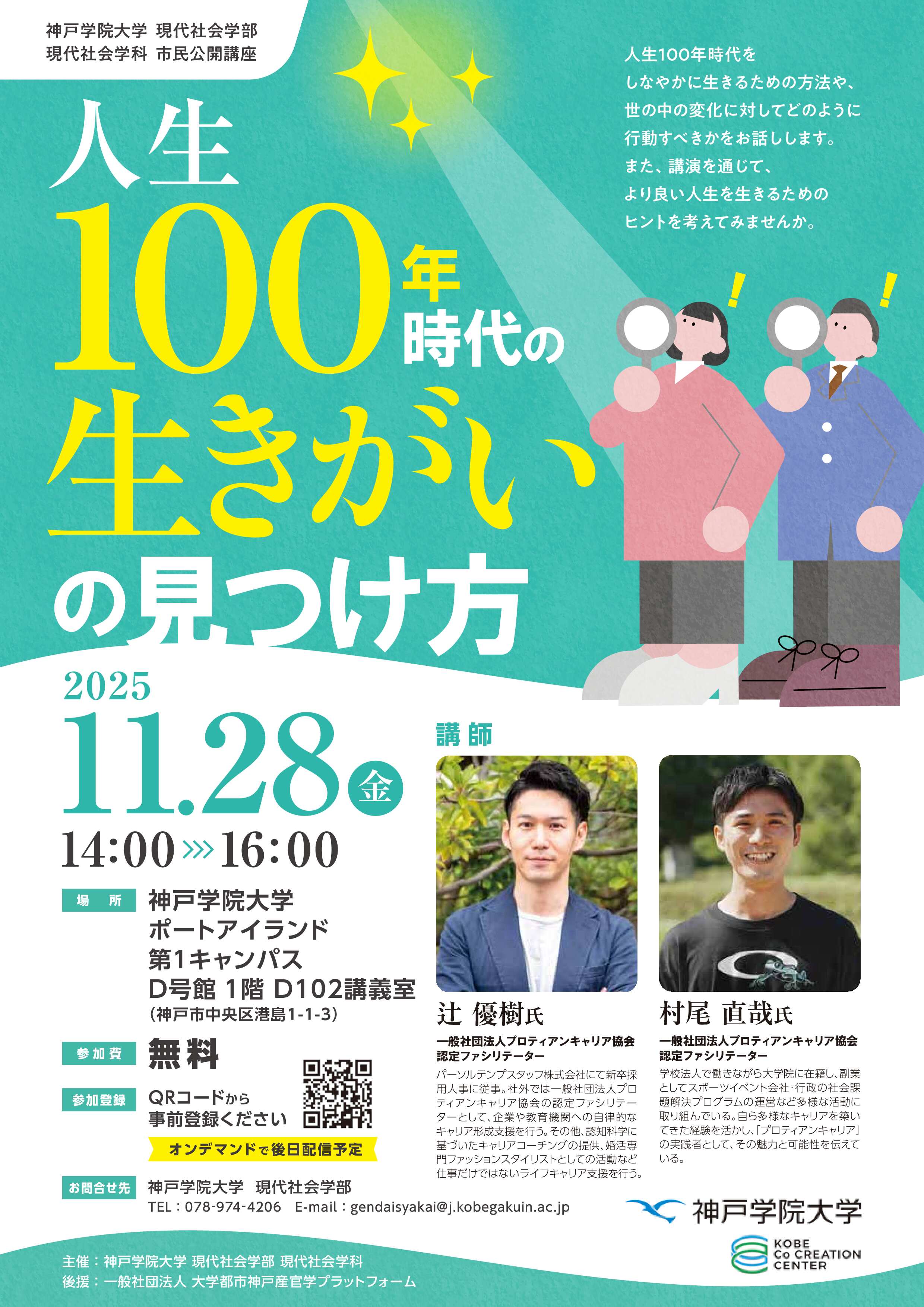 「人生100年時代の生きがいの見つけ方」 11月28日(金)市民公開講座開催!