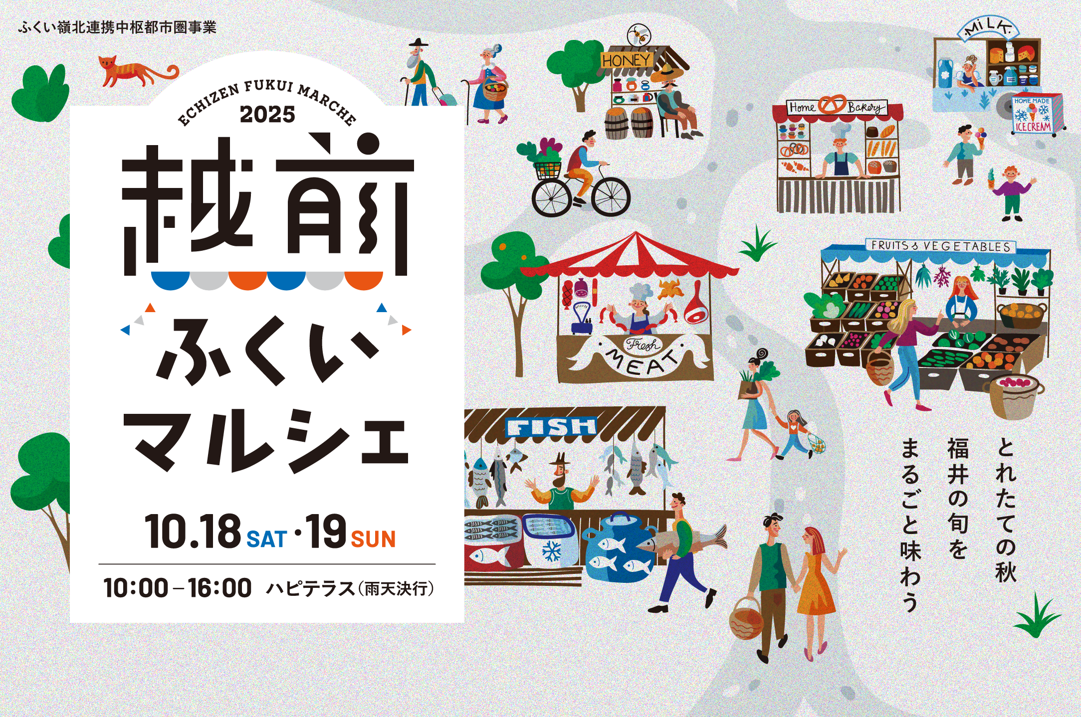 【福井県福井市】イベント限定の特別メニューあり!福井の旬をまるごと楽しめる「越前ふくいマルシェ2025」10/18,19 福井駅前ハピテラスで開催