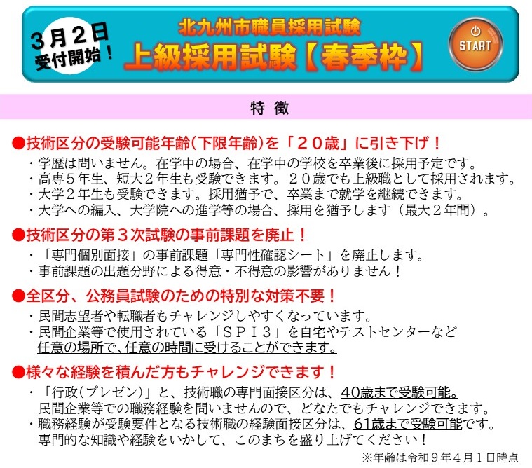 【技術・経験者区分 採用強化!】北九州市職員採用試験が進化します! ~令和8年度北九州市職員採用試験の日程・変更点を公表しました~