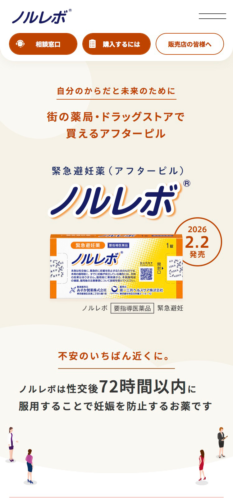 緊急避妊薬(アフターピル)「ノルレボ(R)」2月2日(月)の販売開始に向けてブランドサイトを公開