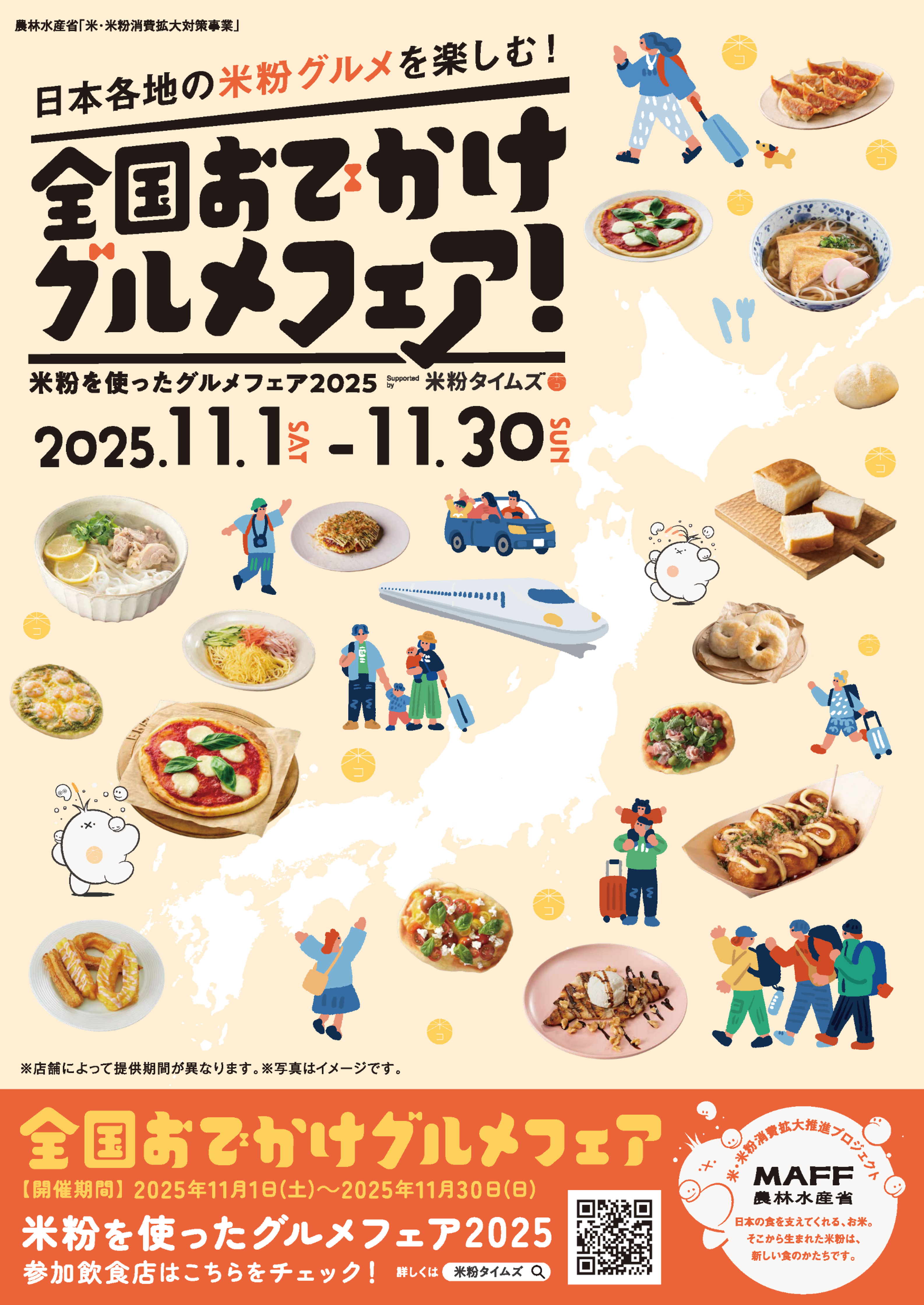 米粉と店舗の魅力を発信「日本各地の米粉グルメを楽しむ!全国おでかけグルメフェア!」11月1日(土)~11月30日(日)まで開催決定