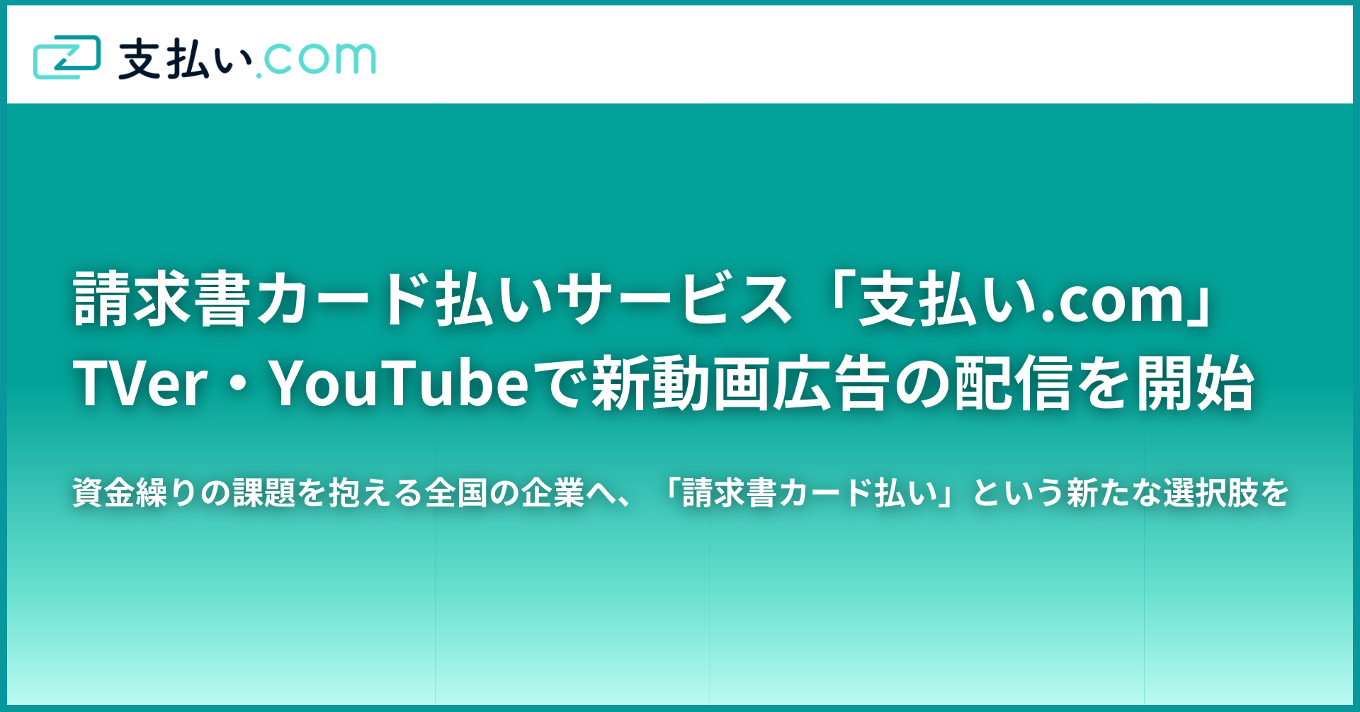 請求書カード払いサービス「支払い.com」、TVer・YouTubeで新動画広告の配信を開始
