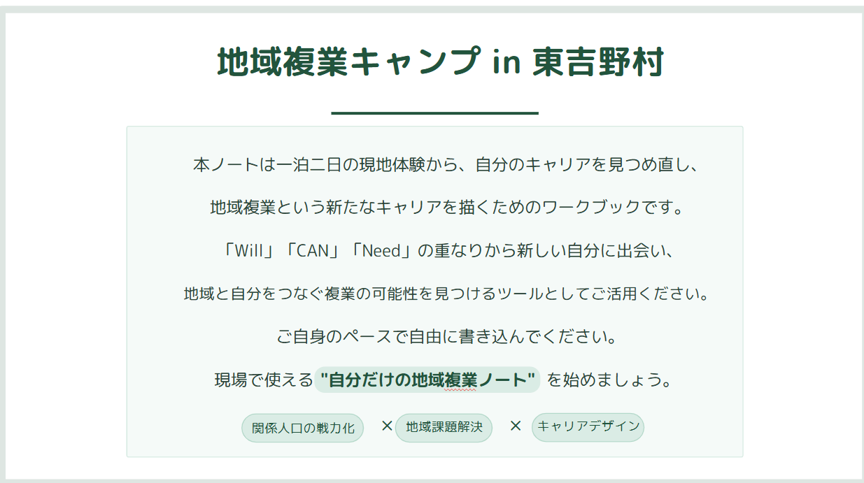 「我々はどう生きるか」40~50代の人生を整える2日間 東吉野村「アート×キャリア」地域複業キャンプ第2弾募集開始!