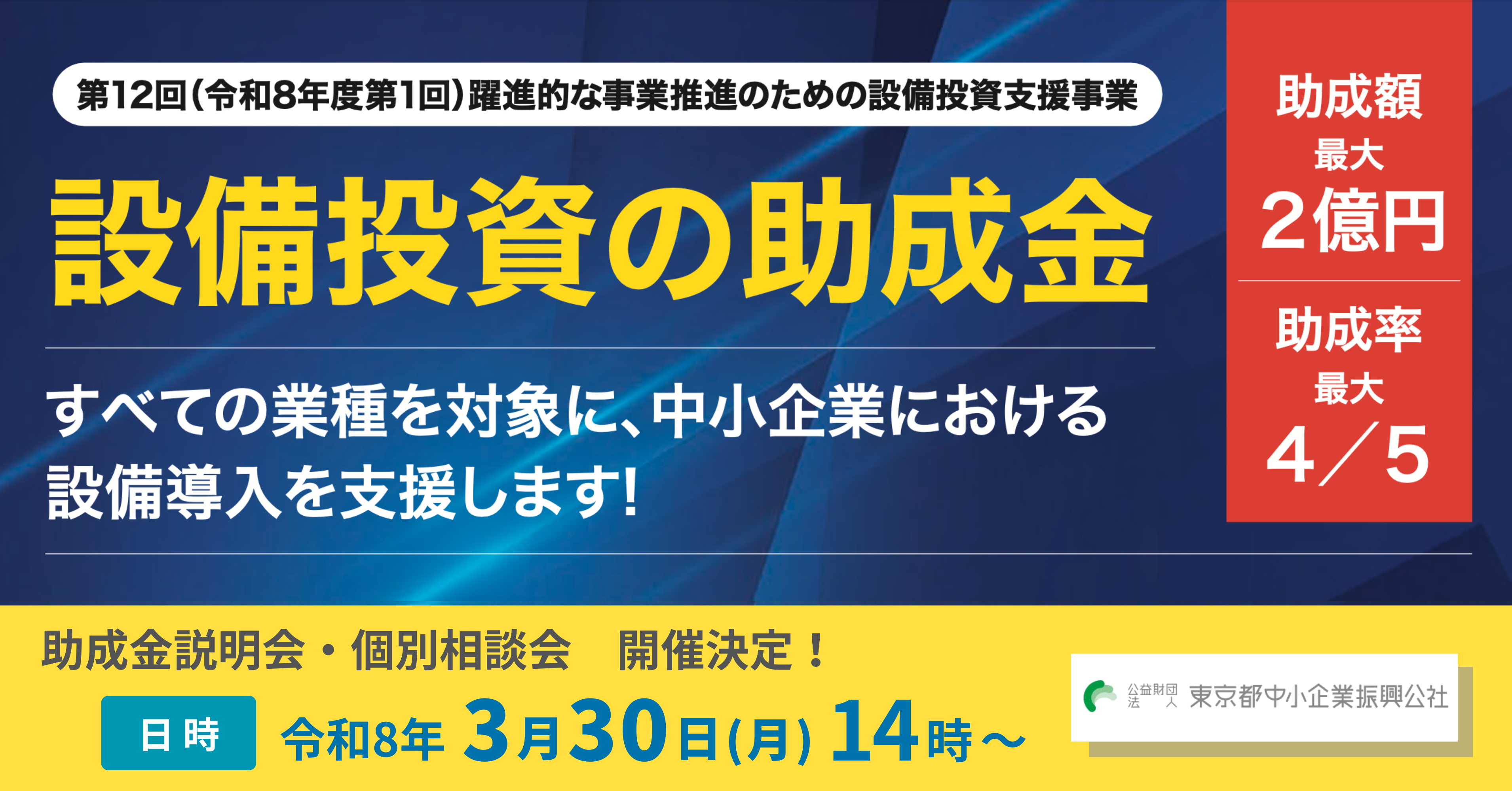【すべての業種対象】最大2億円・助成率4/5の助成金で設備投資を支援!