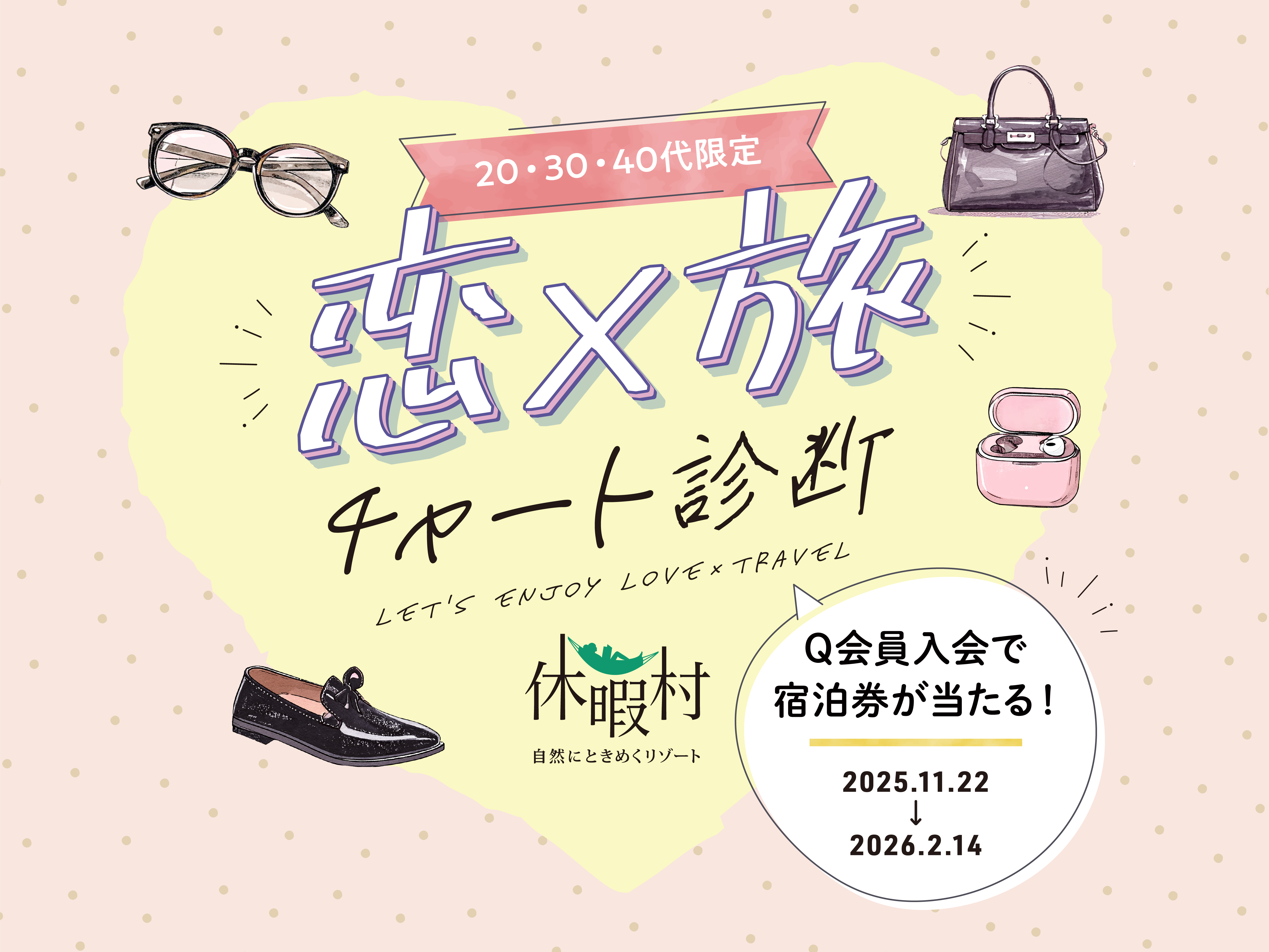 【20・30・40代限定】あなたにぴったりの休暇村を恋愛で診断!?自然にときめくリゾート休暇村、恋と旅を掛け合わせた「恋×旅(コイタビ)チャート診断」を11月22日よりスタート