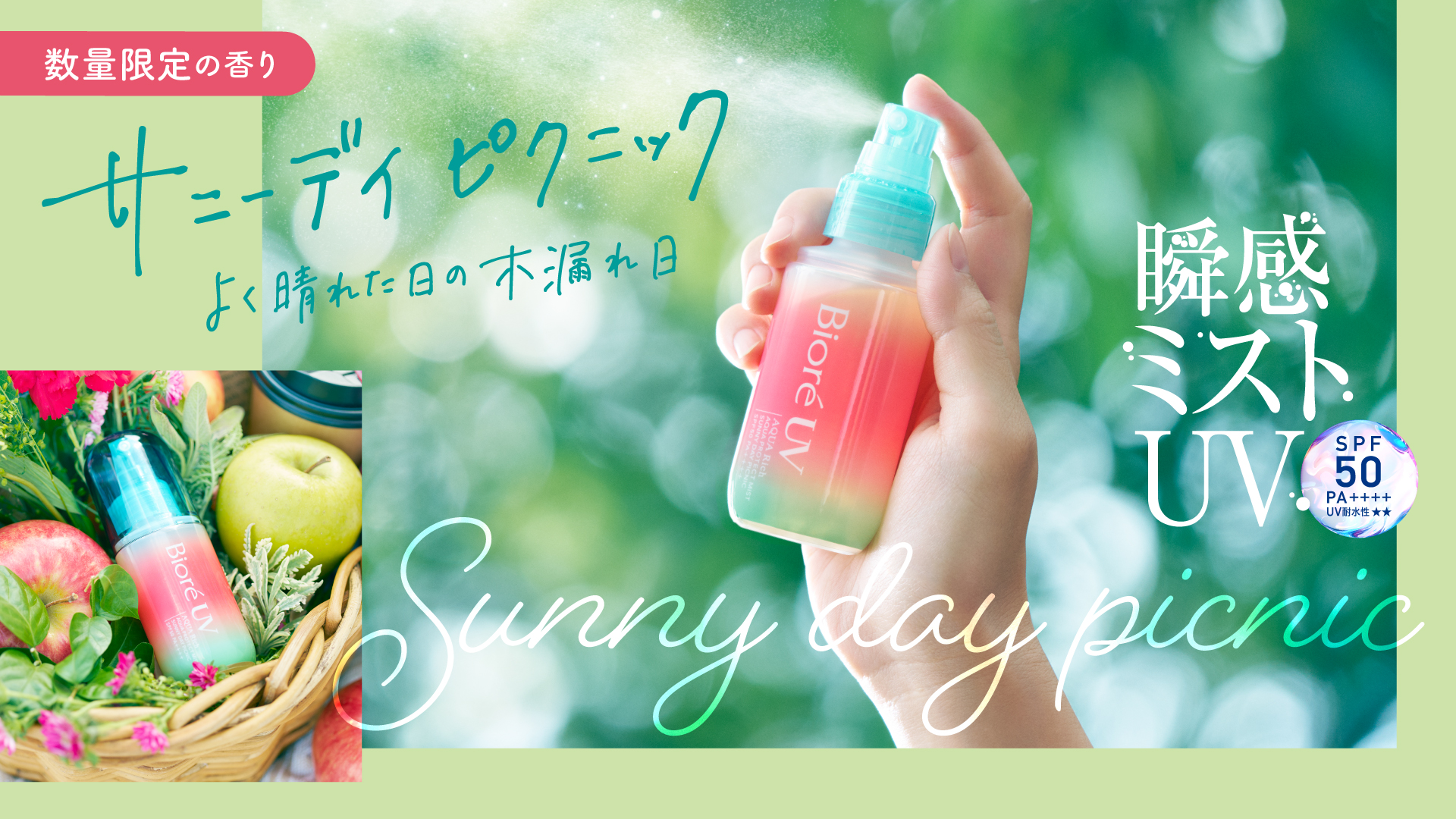 『ビオレUV アクアリッチ アクアプロテクトミスト』から「よく晴れた日の木漏れ日」をイメージした香り 『サニーデイピクニック』数量限定発売