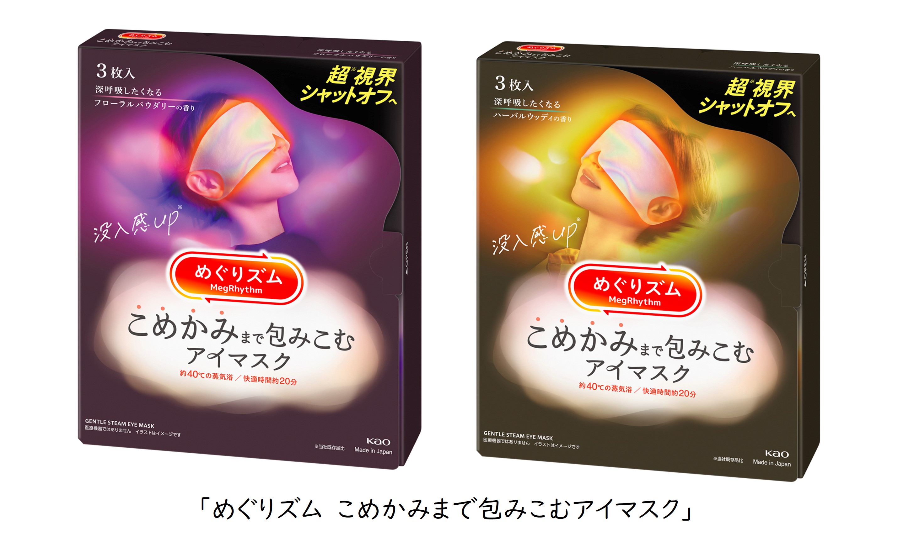 マツキヨココカラ&カンパニーと花王株式会社の共同企画 「めぐりズム こめかみまで包みこむアイマスク」 「めぐりズム」史上最大サイズ、超*1 視界シャットオフへ