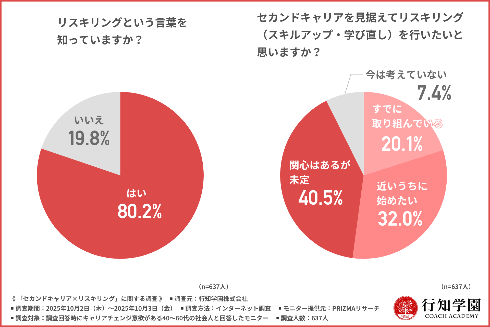 【40~60代のセカンドキャリアの意識調査】リスキリングへの関心は高いが、行動に移せていない方が多数…セカンドキャリアの壁は「時間」と「費用」