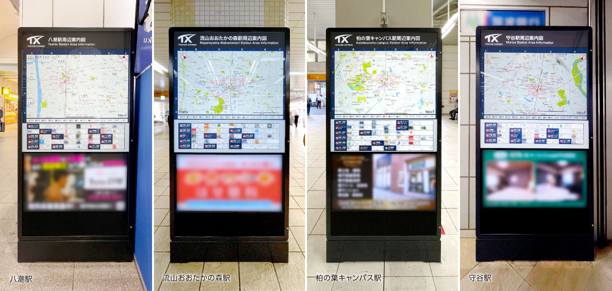 開業20周年を迎えたつくばエクスプレス4駅に設置の周辺案内地図をデジタル化へ