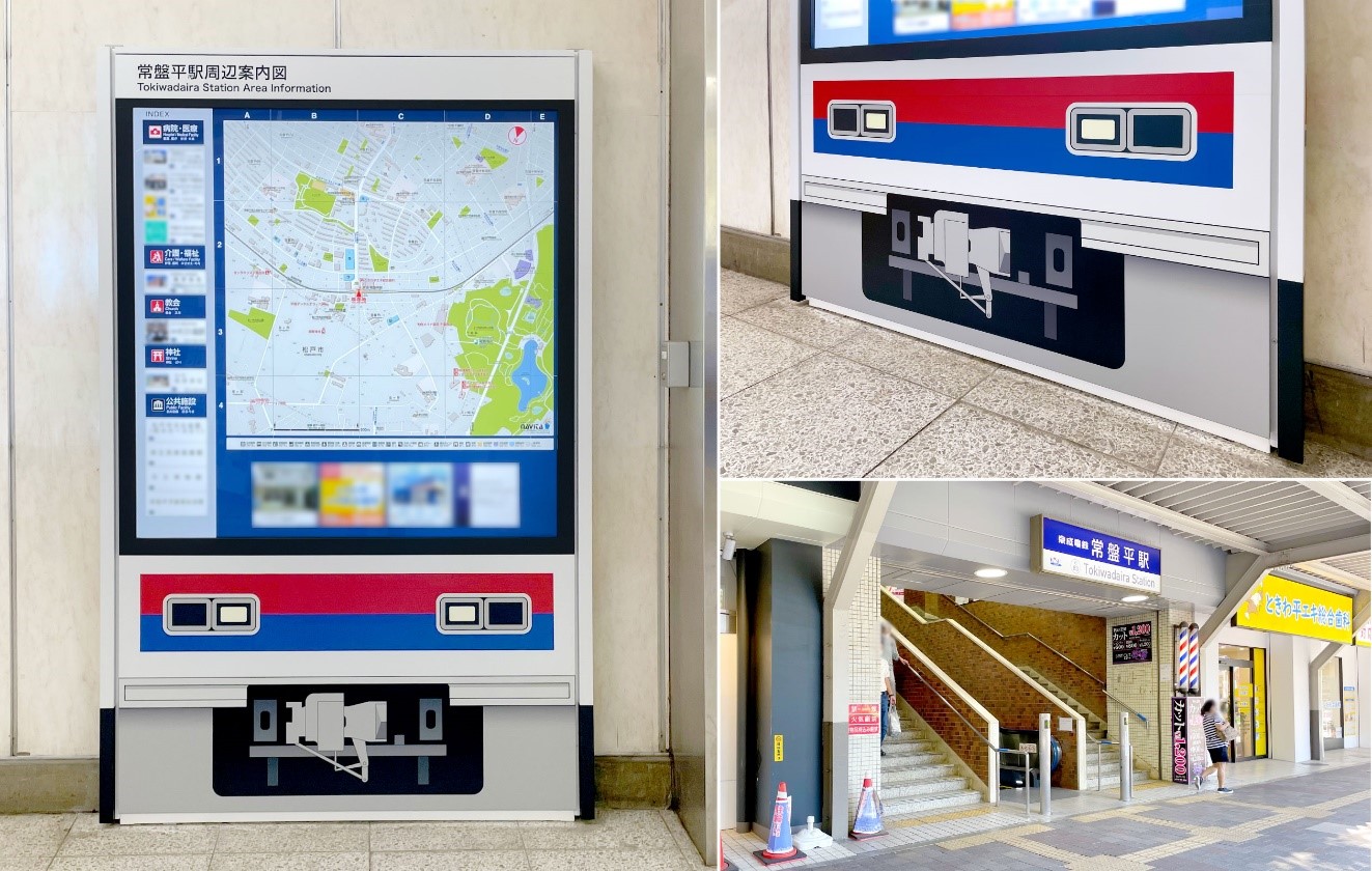 京成電鉄の 8800 形車両をイメージした『電車ナビタ』第 5 弾!常盤平駅(千葉県松戸市)に設置