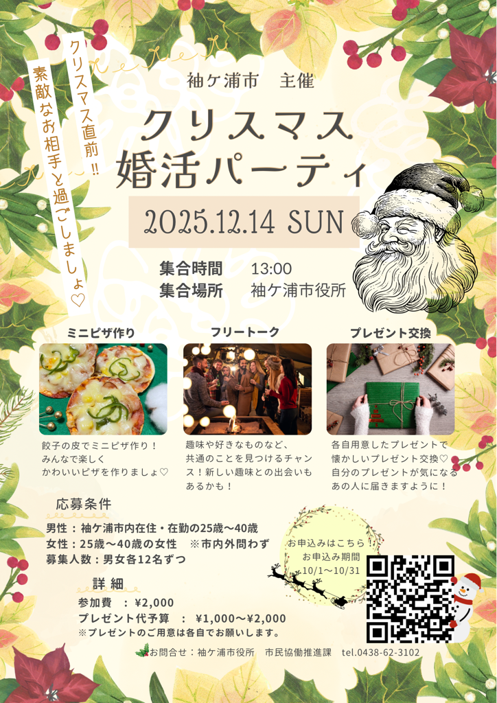 【千葉】共同作業をしながら仲を深める(ハート)「袖ケ浦市クリスマス婚活パーティ」を開催します!