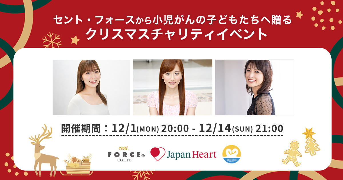 【ジャパンハート×セント・フォース】クリスマスチャリティイベント開催 ~セント・フォース所属アナウンサー36名の“サンタフォース”とともに、小児がんと闘う日本の子どもたちへクリスマスプレゼントを~