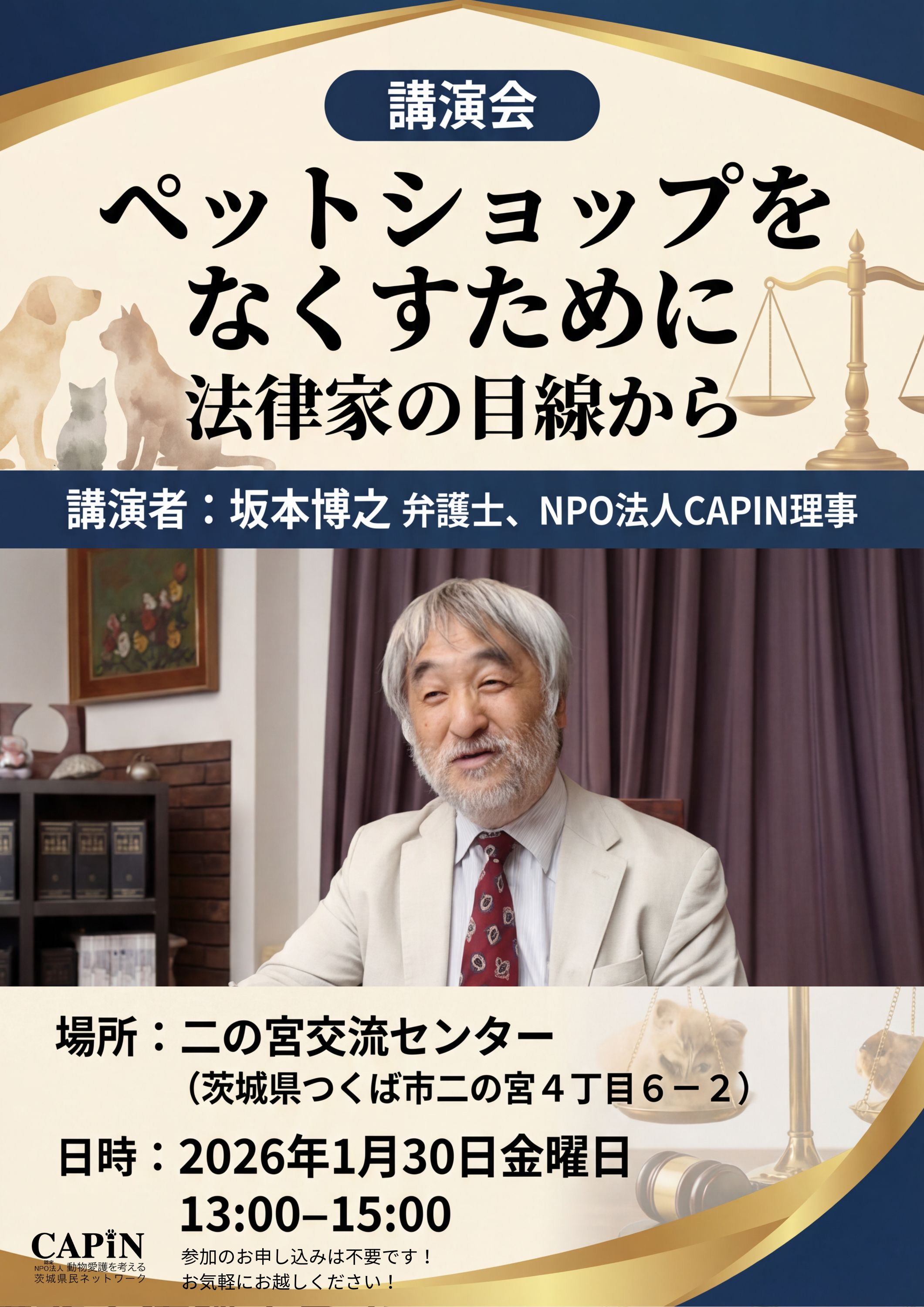 講演会「ペットショップをなくすために ― 法律家の目線から」1月30日開催!