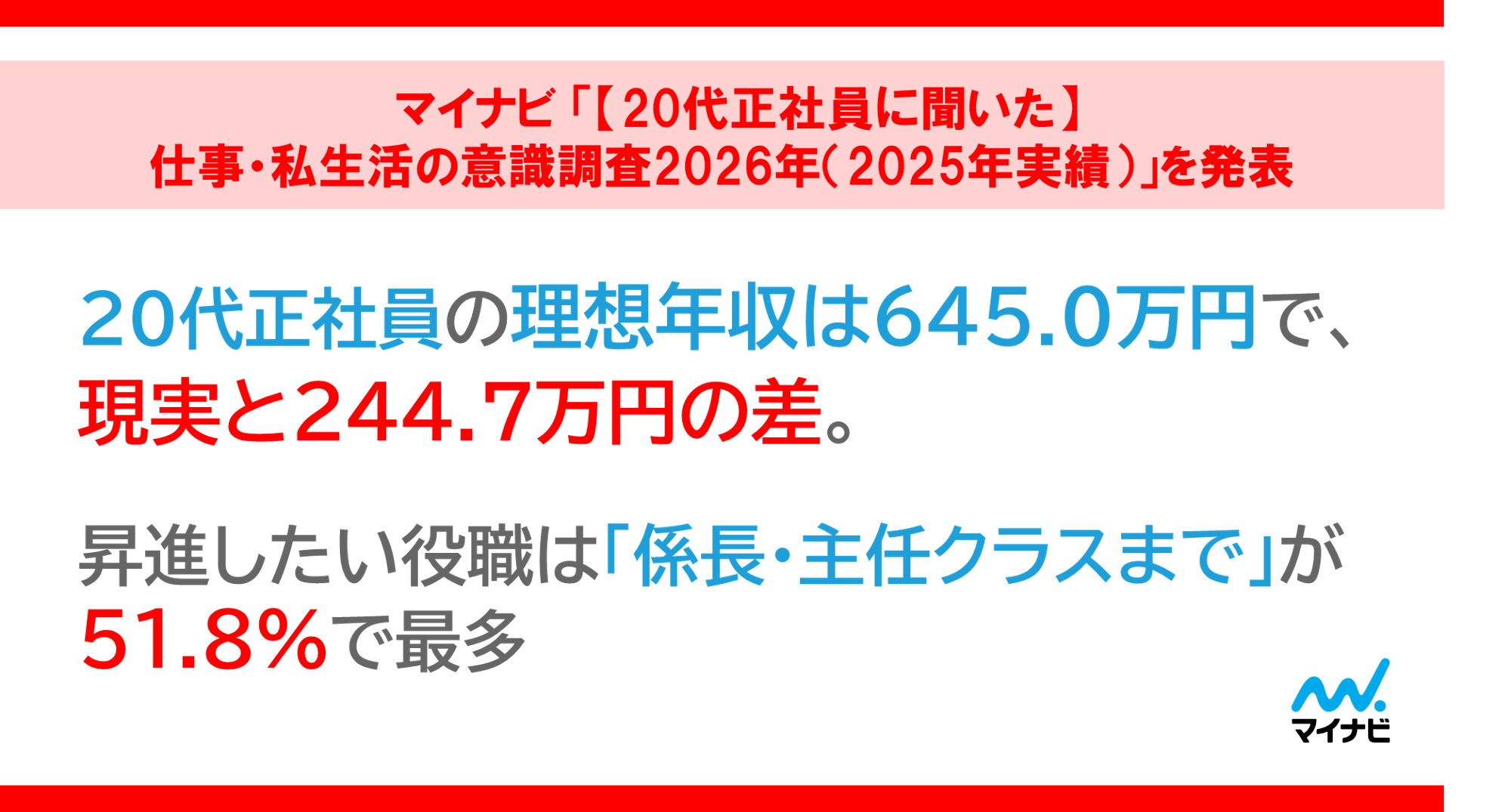 マイナビ「【20代正社員に聞いた】仕事・私生活の意識調査2026年(2025年実績)」を発表