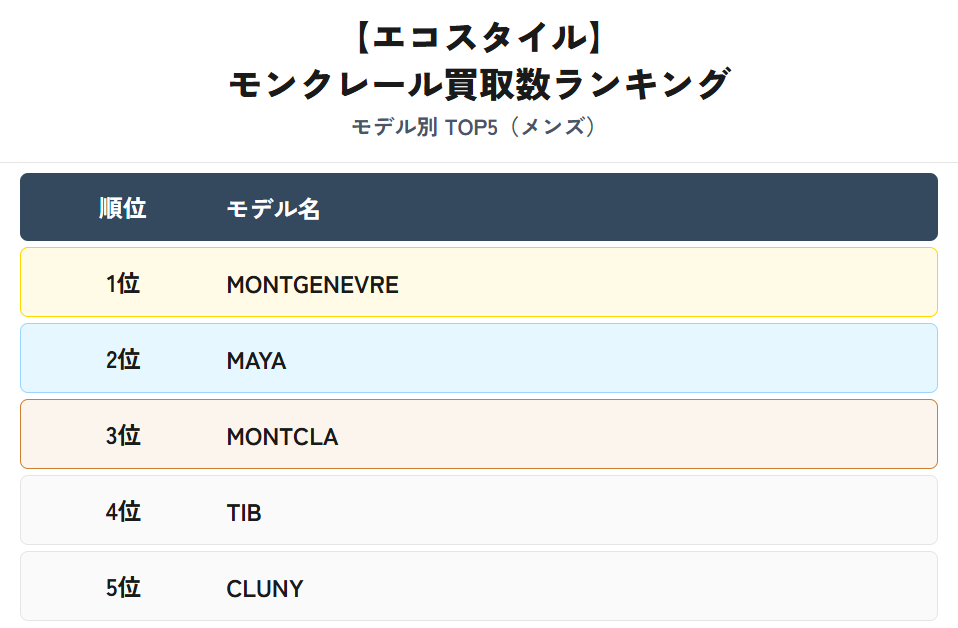エコスタイル全店、モンクレール買取モデルランキングを公開