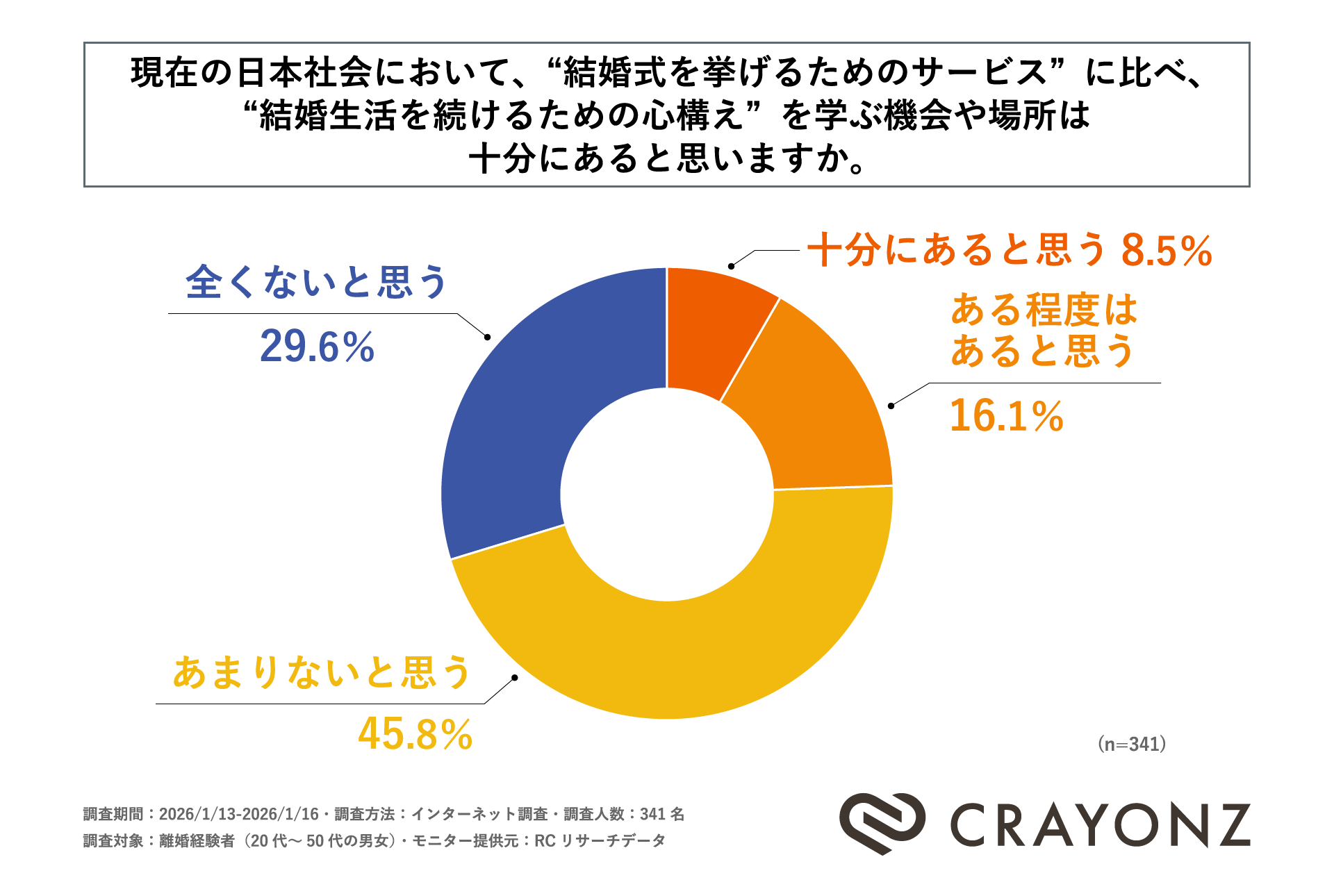 離婚経験者の75%以上が「結婚の続け方を学ぶ機会や場所が日本には十分にない」と回答! 株式会社CRAYONZが「離婚経験者の結婚当時の覚悟と離婚の関係性に関する調査」を実施!