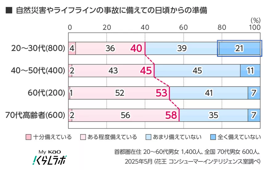 【東日本大震災から15年】 年代・暮らし方により災害への備え意識や実態に差 ―若年層は準備不足、高齢者・障害者は不安が顕著に―
