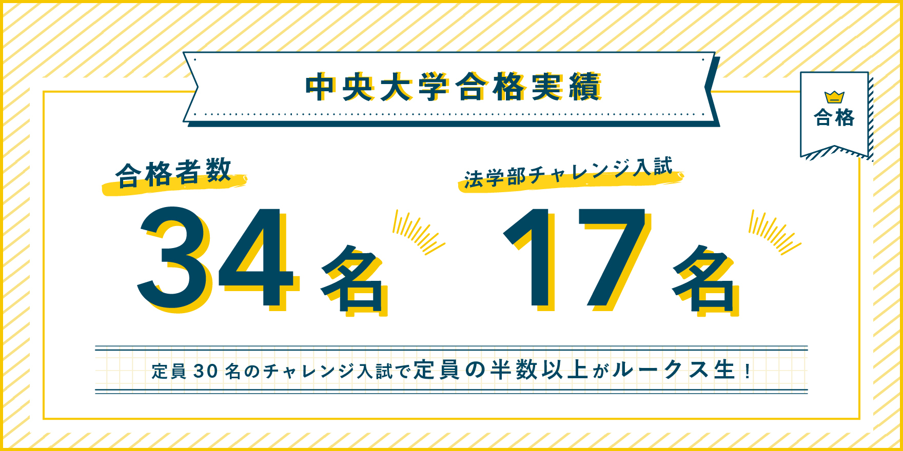 中央大学法学部チャレンジ入試 合格者数“ No.1 ” ルークス志塾、定員の半数以上をLoohcs生が占める圧倒的実績