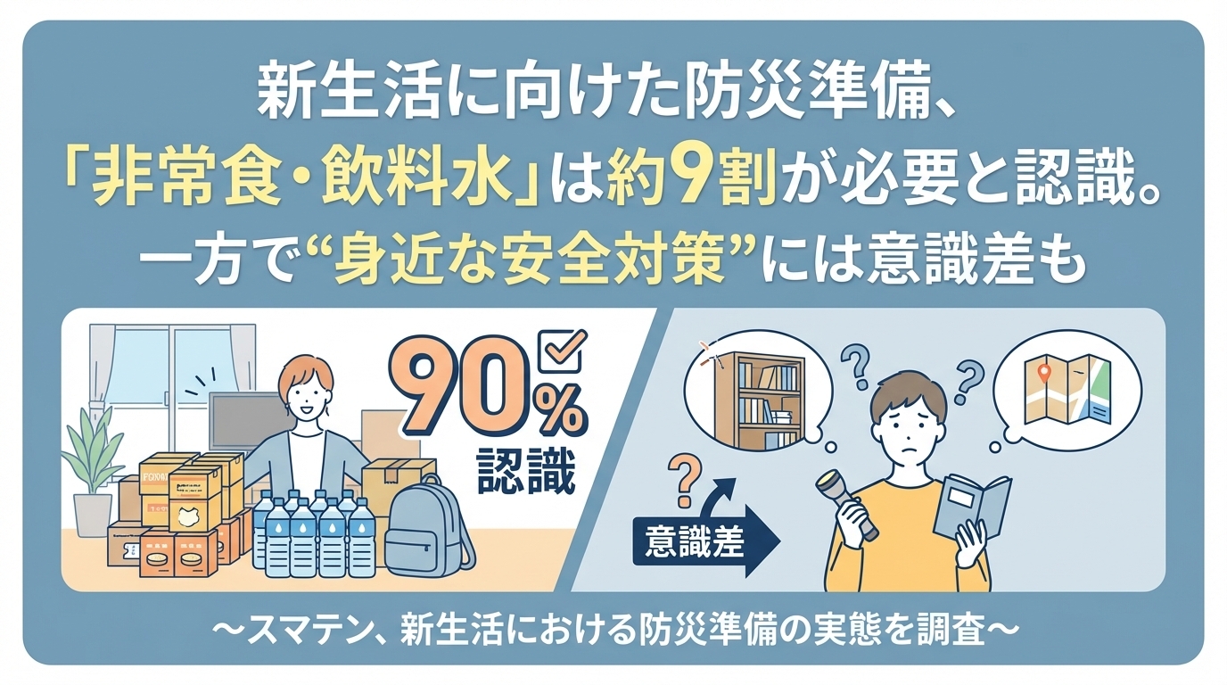 新生活に向けた防災準備、「非常食・飲料水」は約9割が必要と認識。一方で“身近な安全対策”には意識差も