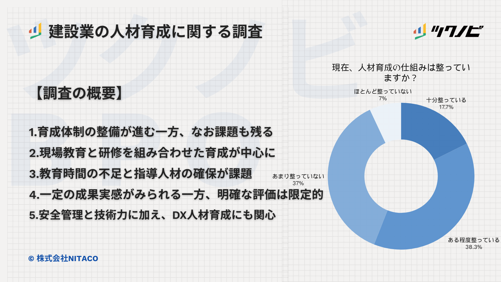 【建設業の人材育成に関する調査】育成体制の整備が進む一方、なお課題も残る