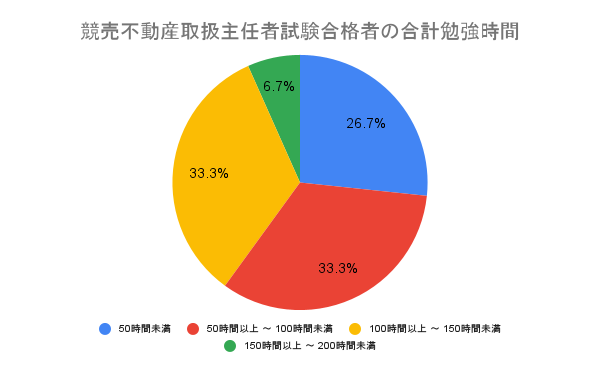 競売不動産取扱主任者試験合格者へのアンケート結果「競売不動産取扱主任者試験に合格したユーザーの勉強時間は50時間以上が73.3%・年齢は40代が最多の40%」