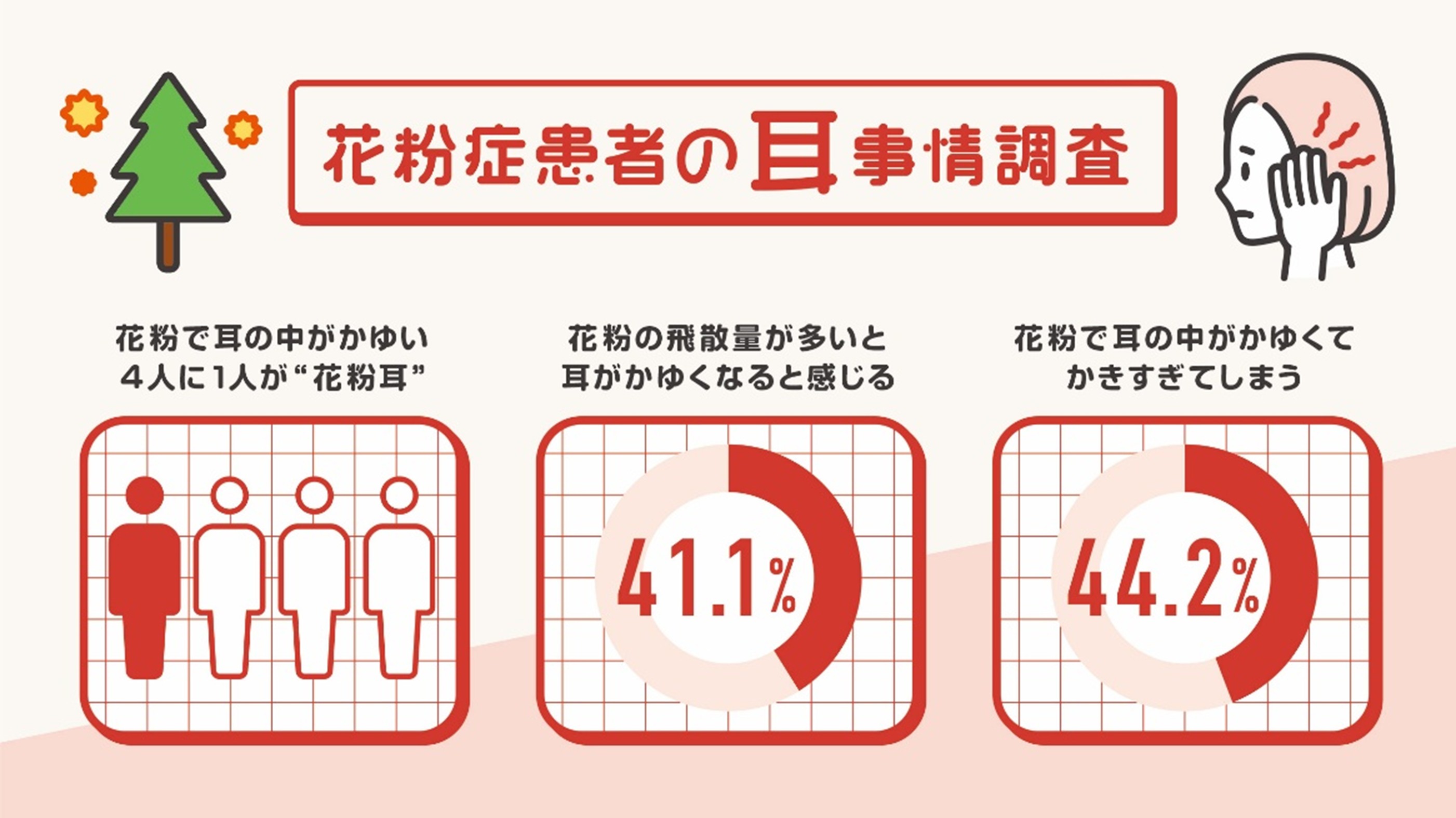 【花粉症患者の耳事情調査】実はそのかゆみ、“花粉耳”かも?4人に1人が花粉症で耳の中がかゆくなる“花粉耳”うち44.2%が耳のかきすぎ等、間違った対処により悪化の恐れ
