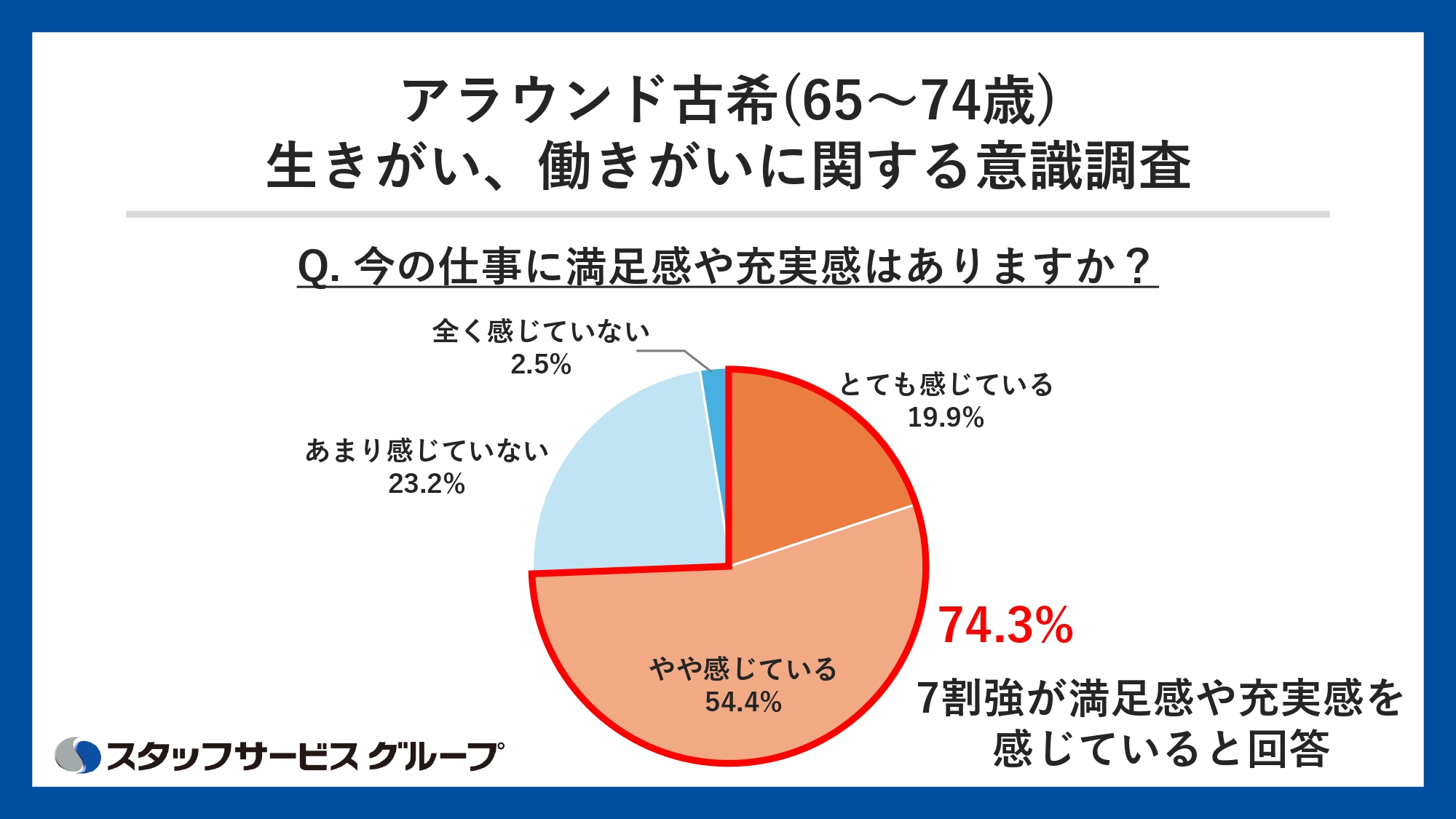 【アラウンド古希(65~74歳)の生きがい、働きがいに関する意識調査】 働く人の7割が今の仕事に満足感・充実感、働く人ほど生きがいを実感