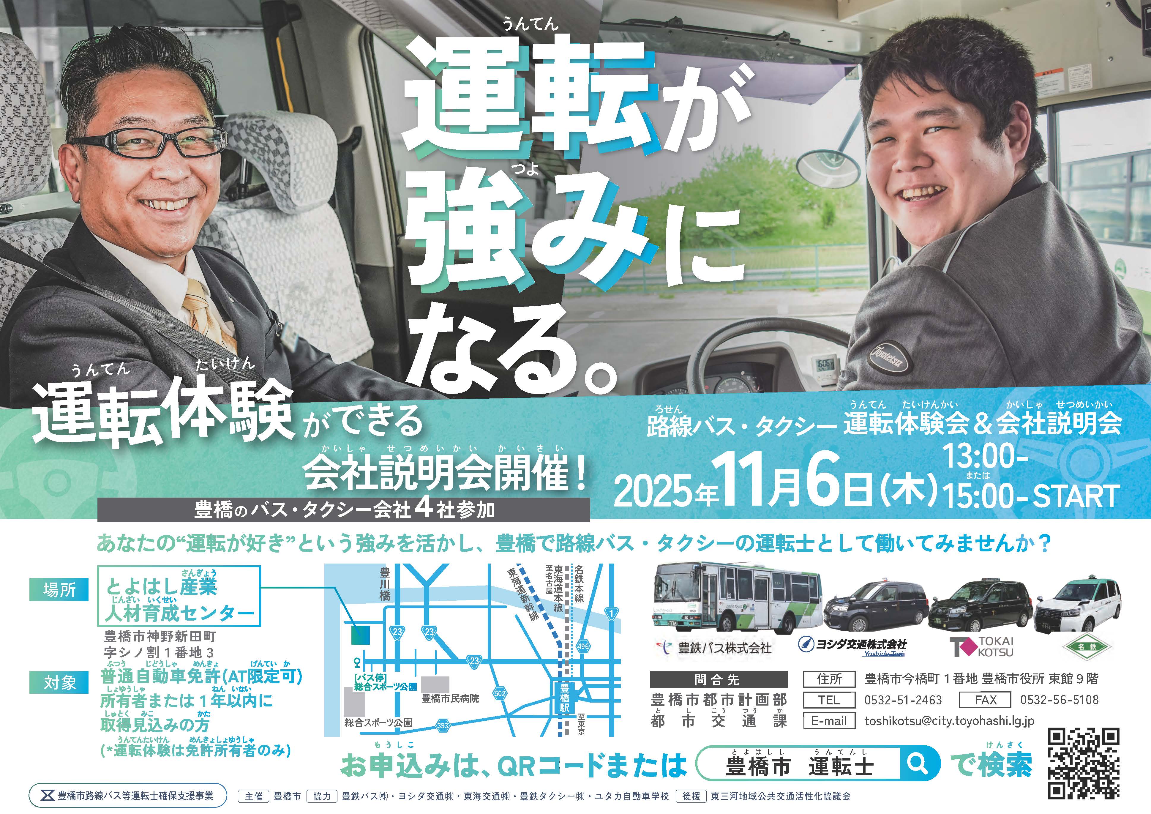 路線バス、タクシーの運転手になりたい方を募集愛知県豊橋市が支援します