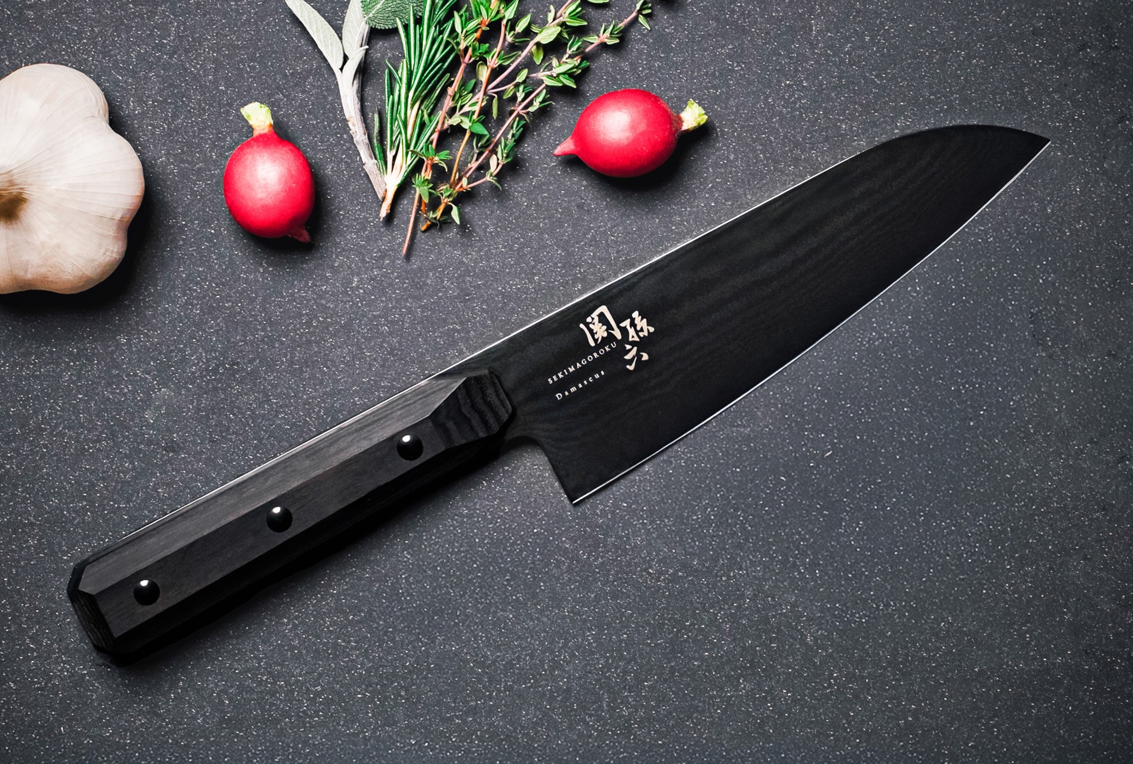 関孫六シリーズの上位ラインナップ「ダマスカス」からオールブラックカラーの包丁が新登場