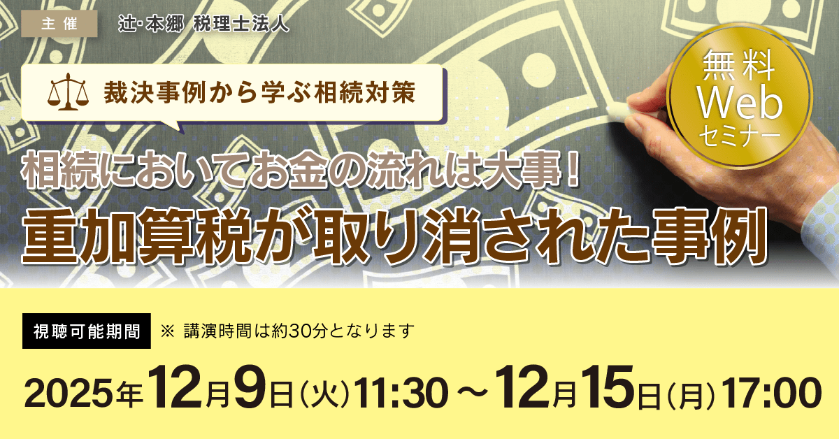 「【裁決事例から学ぶ相続対策】相続においてお金の流れは大事! 重加算税が取り消された事例」無料Webセミナーを開催