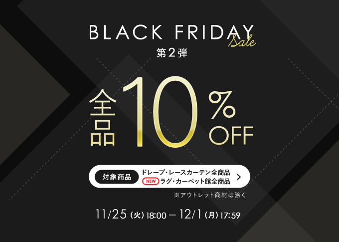 11月25日(火)18:00より開催中!『パーフェクトスペースカーテン館 BLACK FRIDAY SALE第2弾』ドレープ&レースカーテン全品に加え、ラグ・カーペット館の全商品10%OFF!PR TIMES トレンド