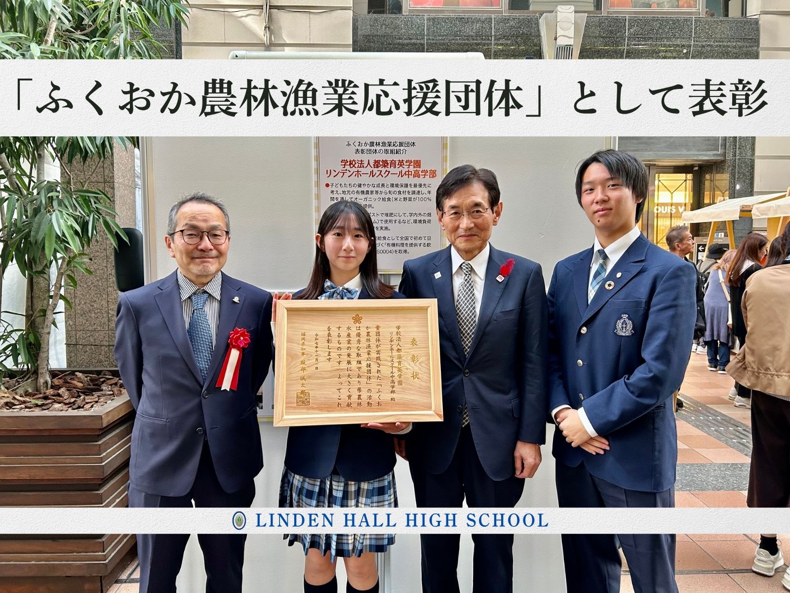 【リンデンホールスクール中高学部】通年オーガニック給食の取り組みが「ふくおか農林漁業応援団体」として表彰