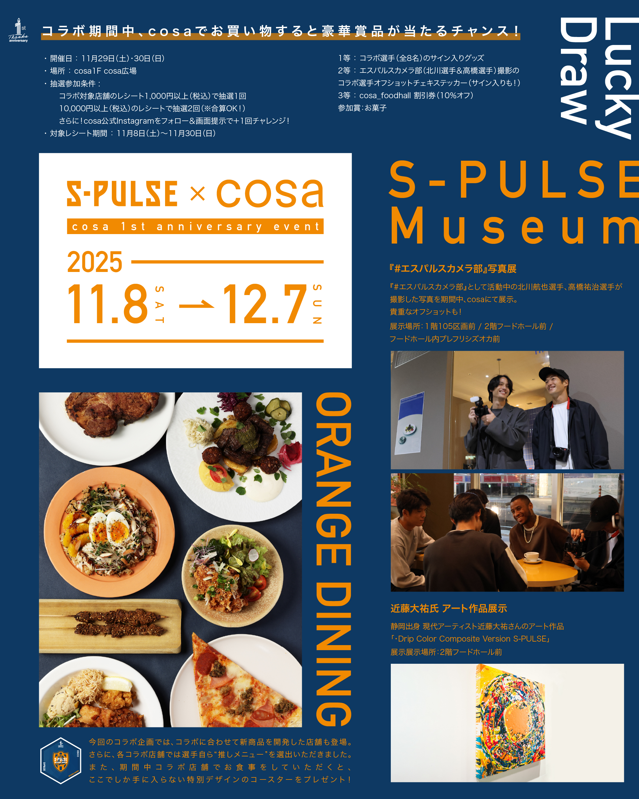 cosa開業1周年イベント第一弾!「S-PULSE×cosa ORANGE DINING」開幕!豪華景品の当たる抽選会も!!