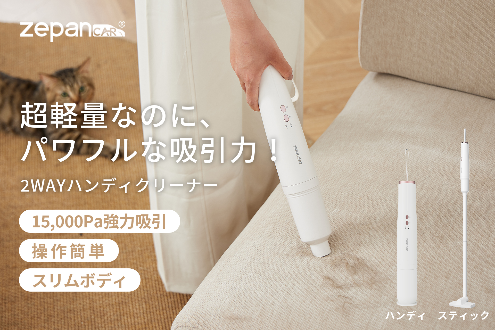 ハンディ&スティックの2Way仕様!最大15,000Paでしっかり吸引するコードレスクリーナー「DY-105」が9月4日楽天zepancarにて販売開始。
