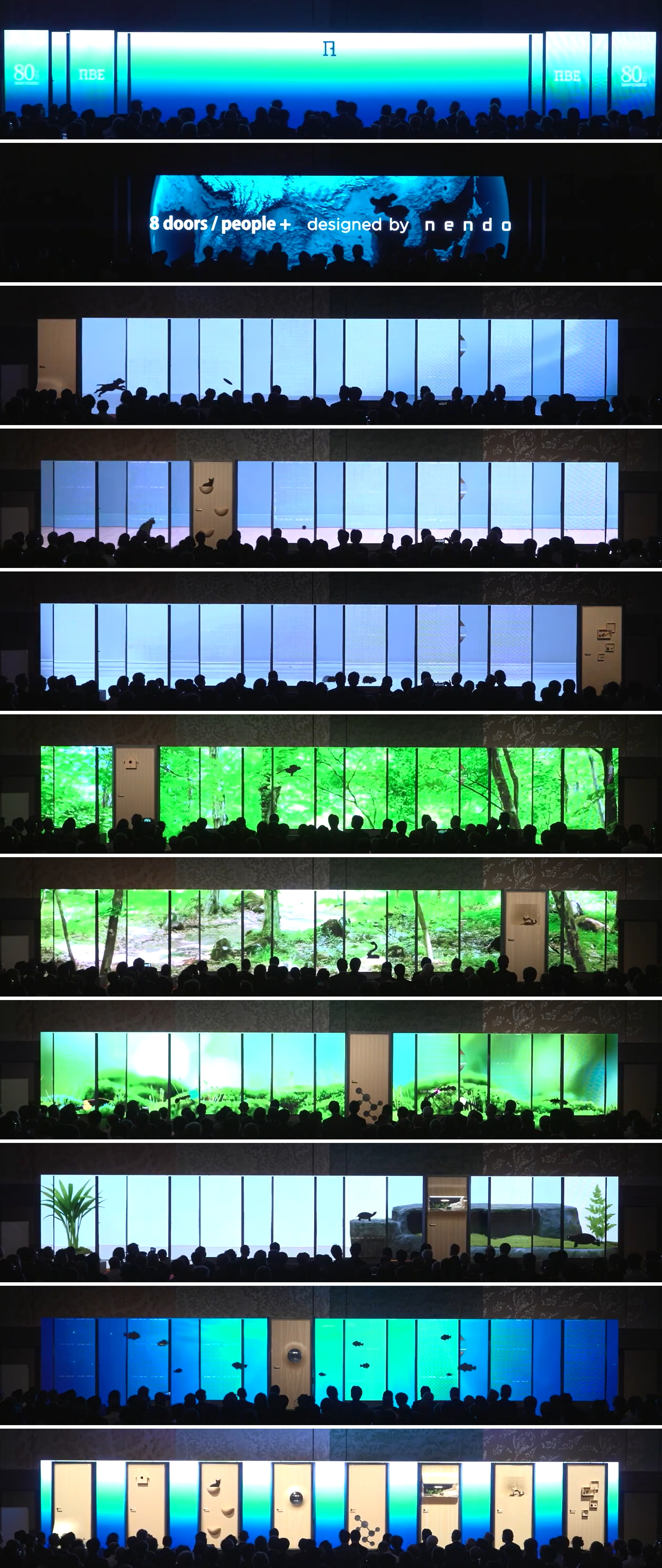 阿部興業(ABE) 創業80 周年記念式典でnendo デザインのドア「8 doors / people +」をRhizomatiks × ABE による特別演出で披露