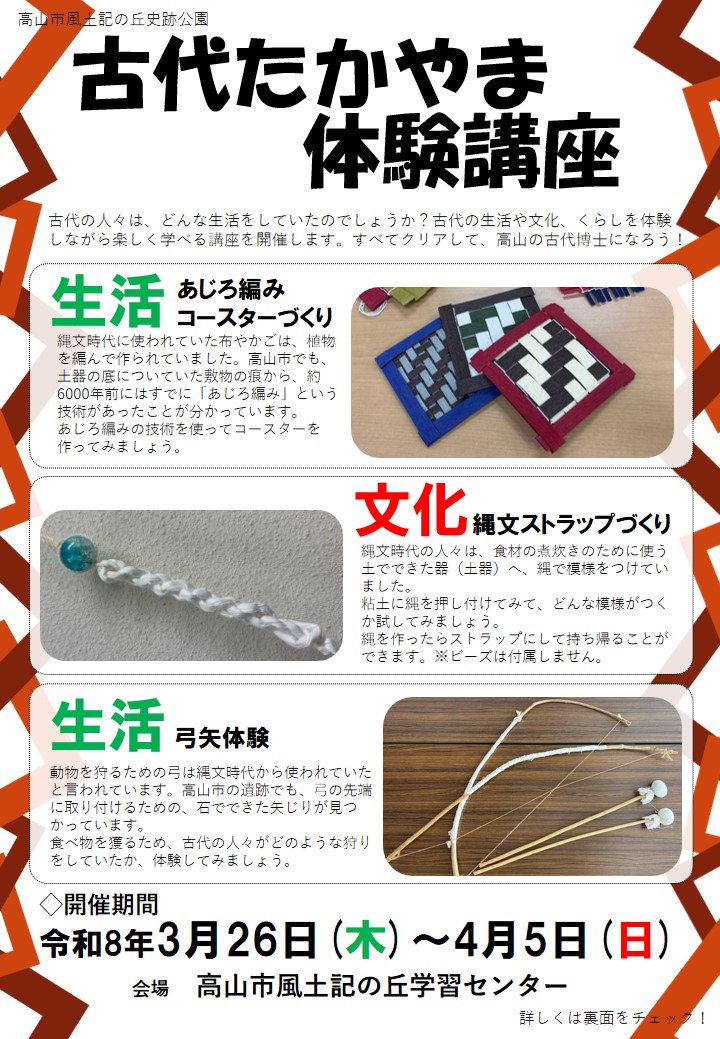 【飛騨高山・岐阜県高山市】春休みは昔の暮らしを体験!高山市風土記の丘史跡公園「古代たかやま体験講座」開催
