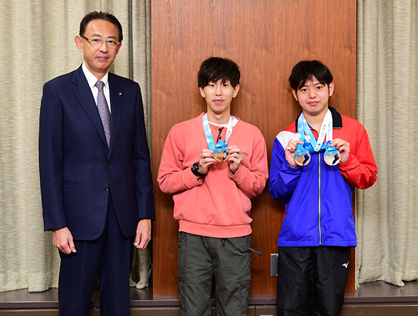 高槻市在住の2選手が全国障害者スポーツ大会優勝を市長に報告
