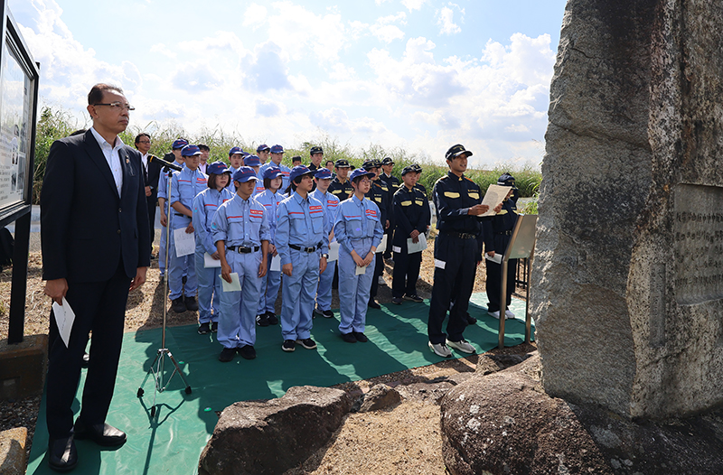 淀川大塚切れの教訓を胸に洪水記念碑前で伝承式を実施