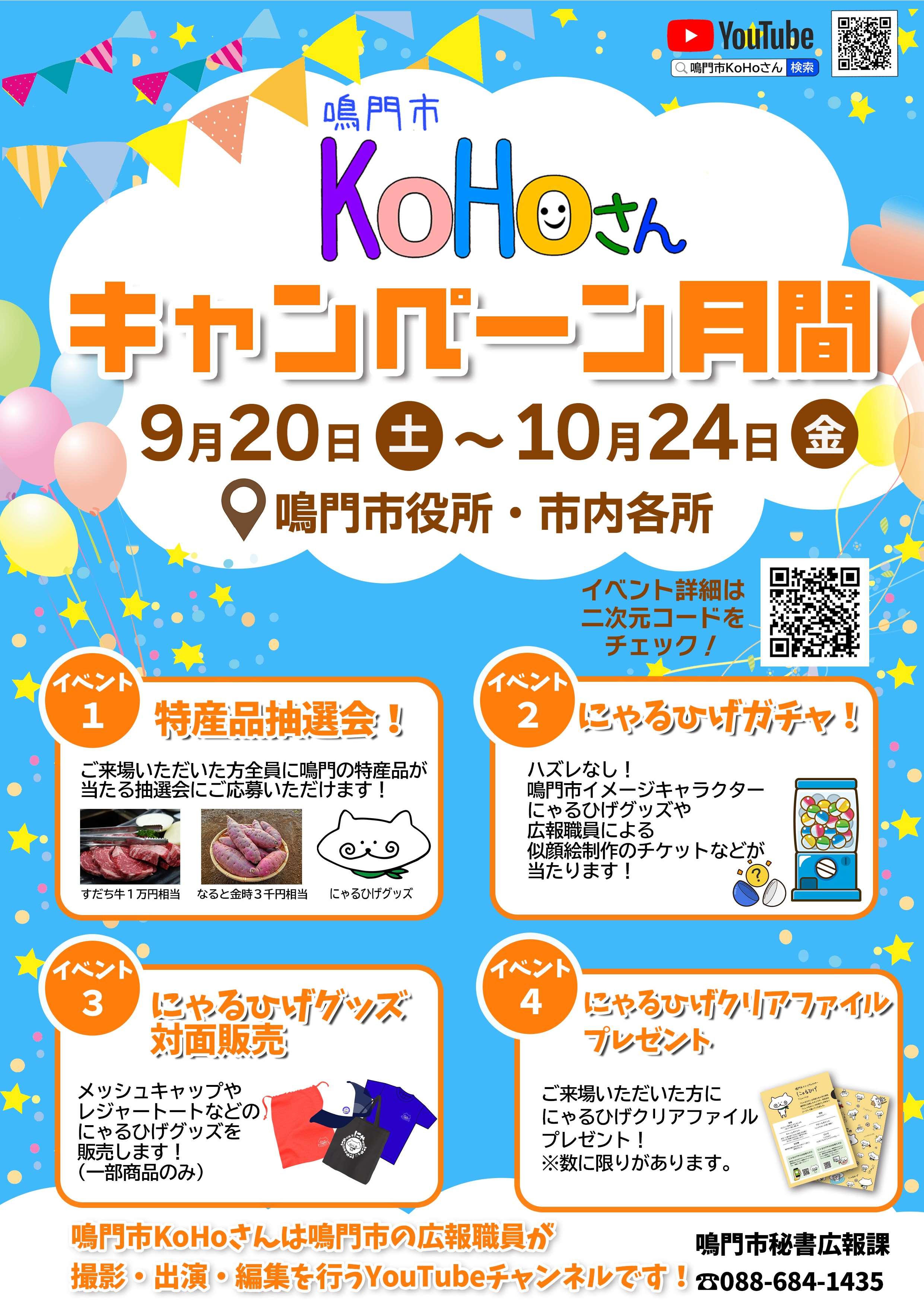 【徳島県 鳴門市役所】鳴門市公式YouTubeチャンネル「鳴門市KoHoさん」キャンペーン月間開催!
