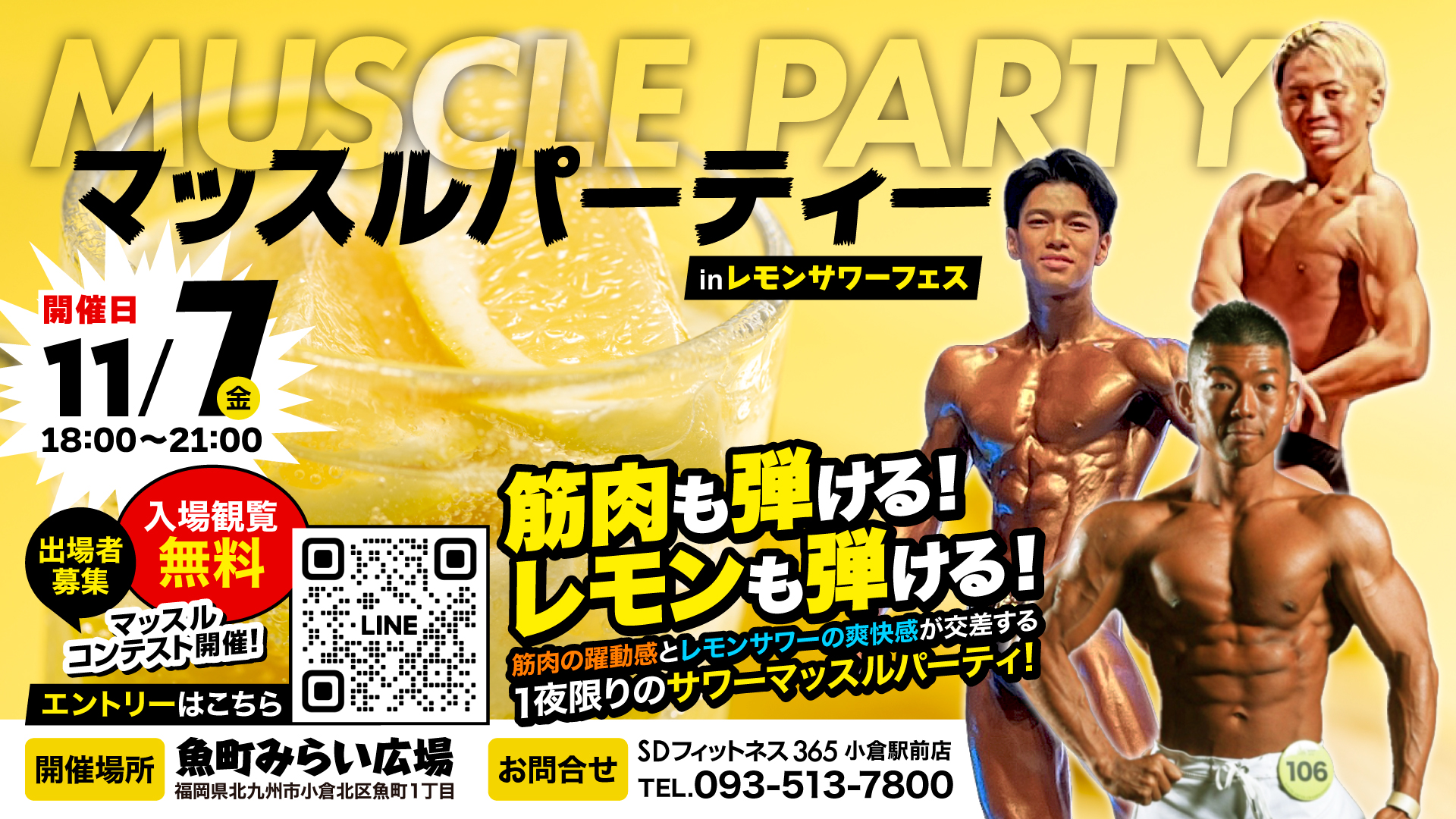 SDフィットネス365小倉駅前店主催『第4回マッスルパーティー』、北九州・魚町みらい広場でレモンサワーフェスと初コラボレーション開催