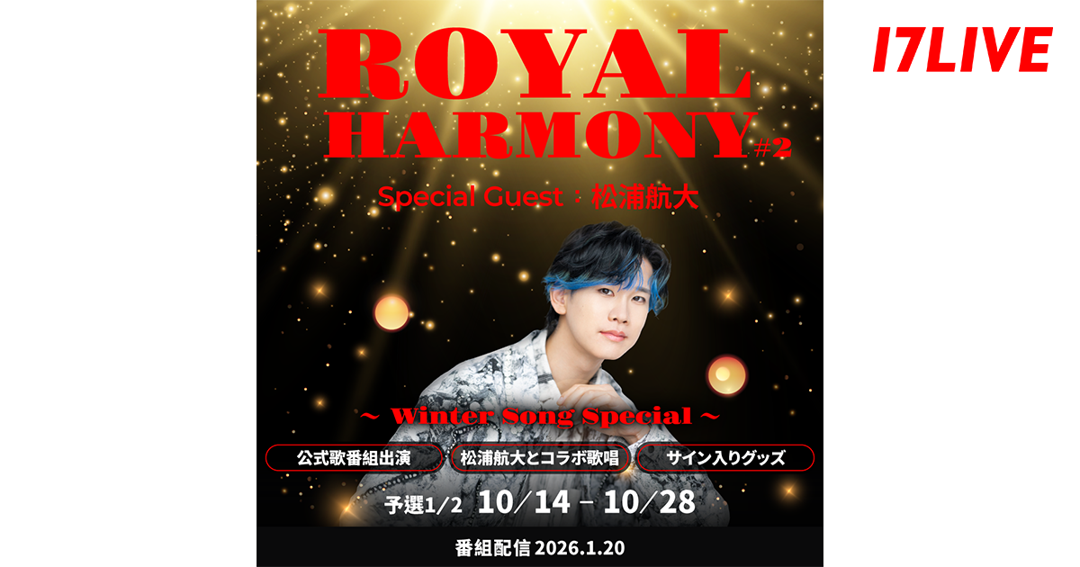 変幻自在の七色ボイスを持つアーティスト松浦航大さんとステージでコラボ歌唱ができる『ROYAL HARMONY#2 ~Winter Song Special~』開催決定!